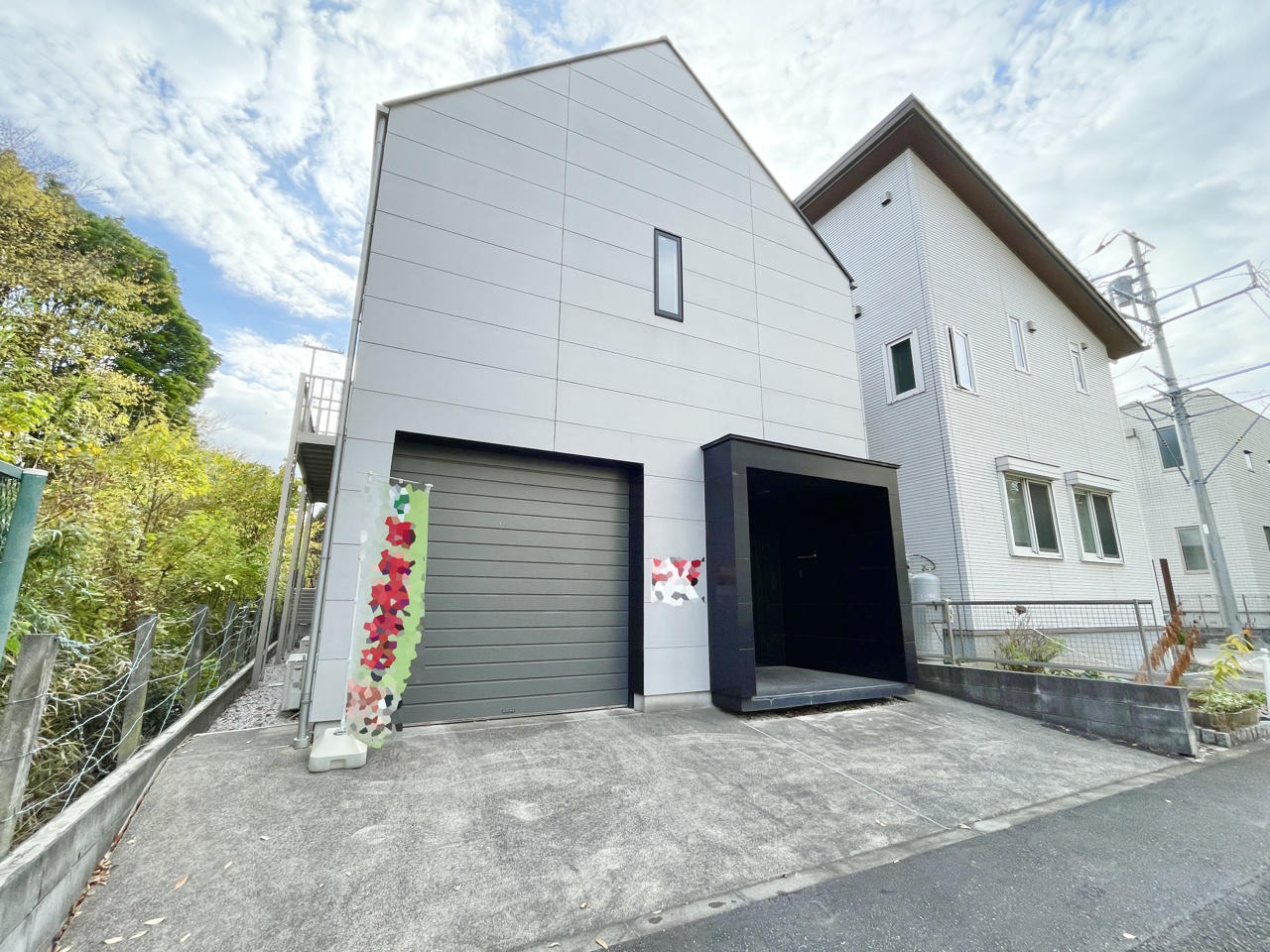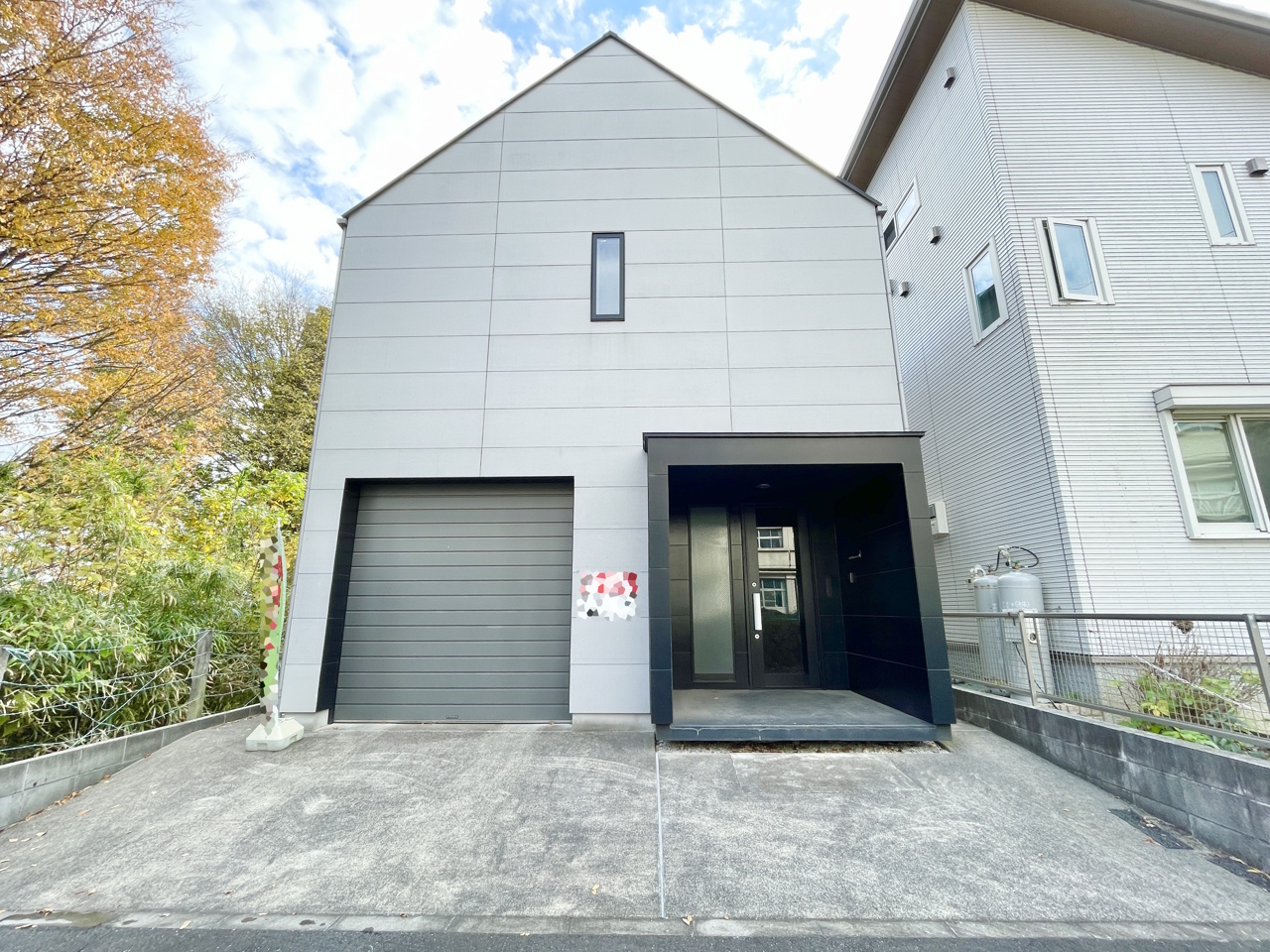 趣味と暮らしが調和する、洗練されたガレージハウス。 シンプルでモダンな外壁と、黒が際立つ玄関が印象的。愛車を守るインナーガレージ付きで、雨の日も荷物の出し入れがスムーズ。利便性とデザイン性を両立した住まいです。