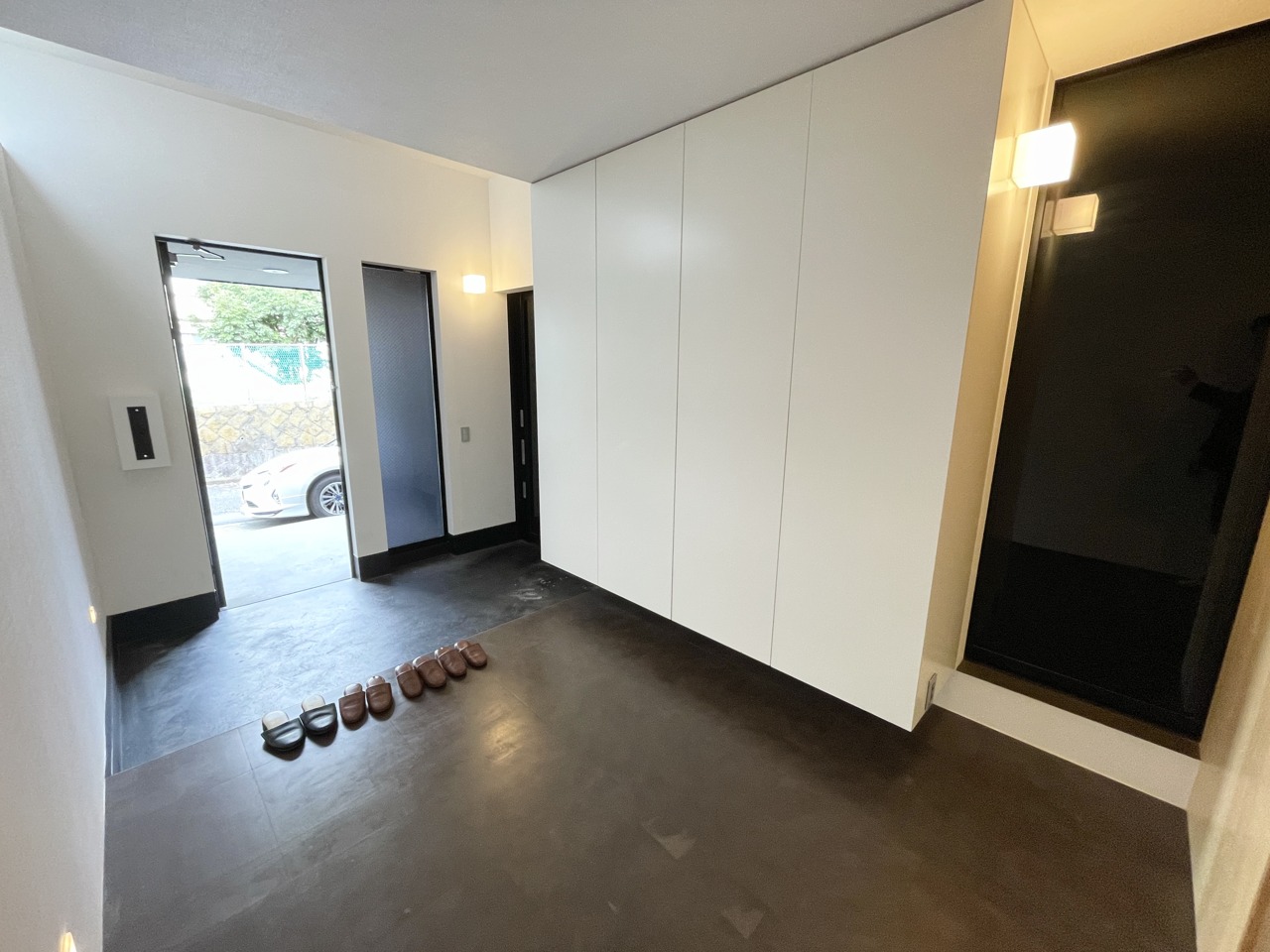 外に出なくともガレージにも直接行ける玄関です。 広い玄関は、多くのものも収納出来ます。