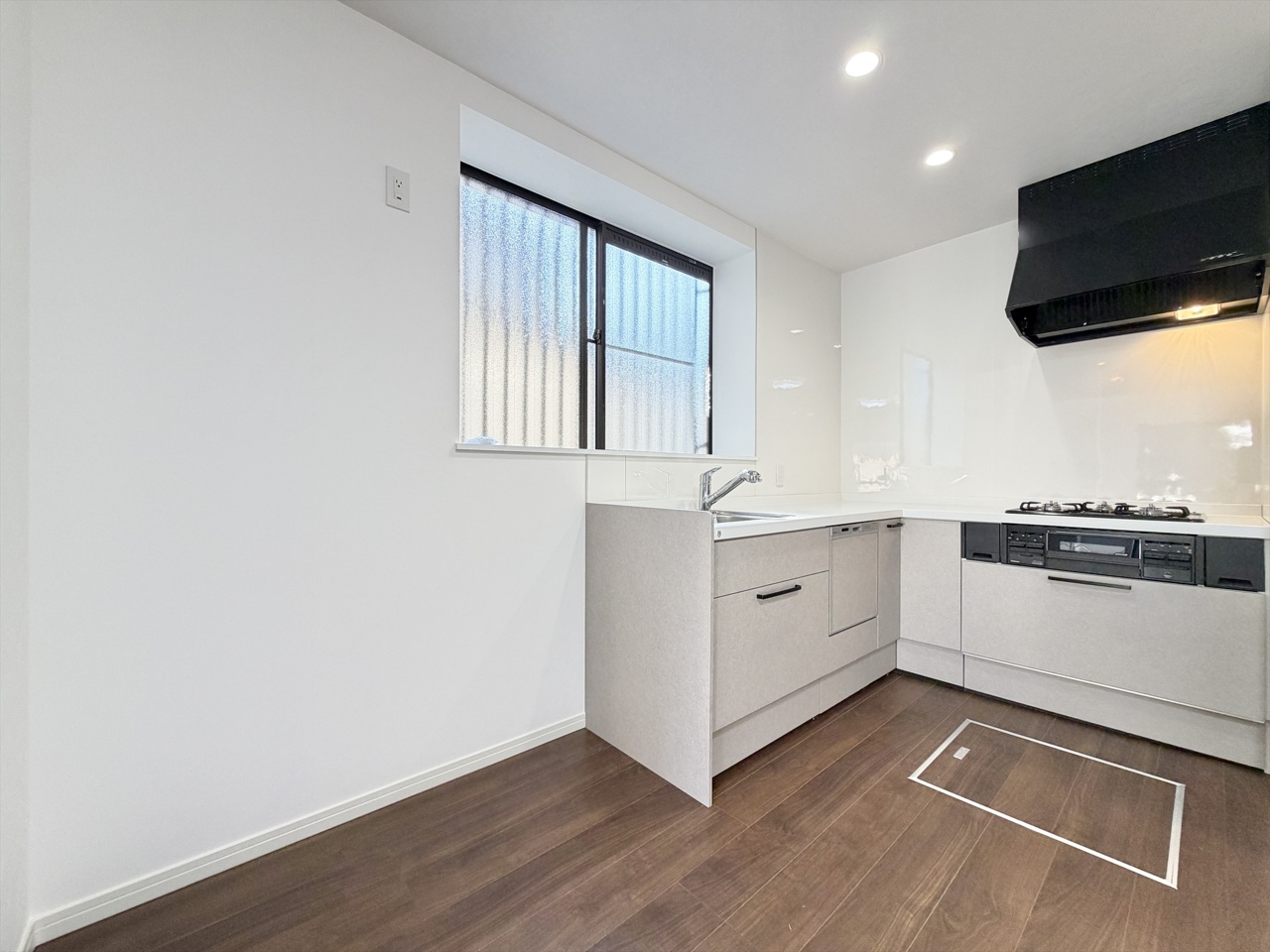 カップボードを置いても十分なスペースがございます。広いワークトップで家事がはかどります◎