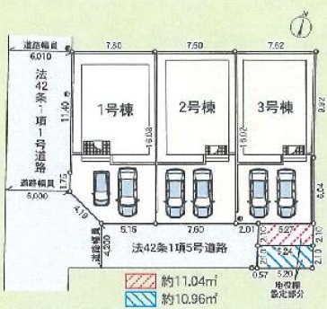 | 土地面積 | 118.51m² ~ 124.06m² 実測 (私道79.41m²~79.41m²別に有) | ||