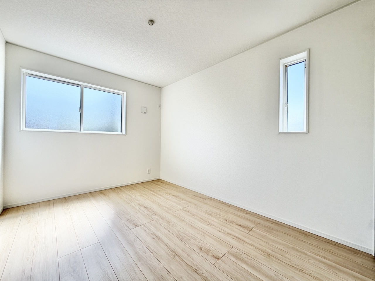 明るい二面採光で、毎日がちょっと特別に感じられる心地よい洋室。大きな窓からは爽やかな光が差し込み、どんなインテリアも似合うシンプルな空間です。寝室や子ども部屋としても使いやすく、新生活を快適にスタートできますよ♪