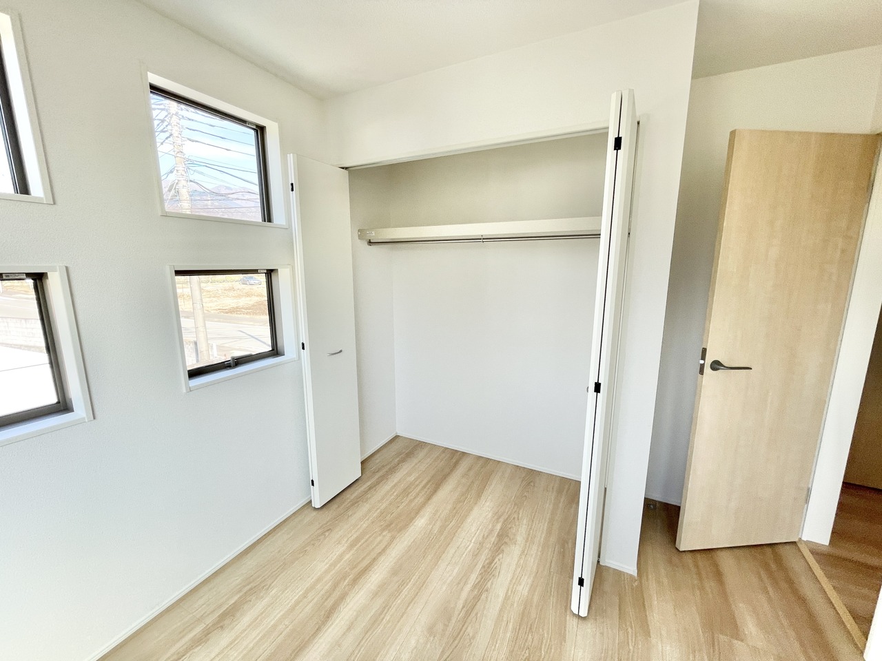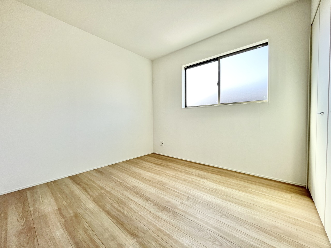 4号棟 陽ざしが心地よく差し込む、ちょうどいいサイズの洋室。クローゼット付きで収納もらくらく♪ シンプルだからこそ、暮らし方が自由に広がる“自分らしいお部屋”です。