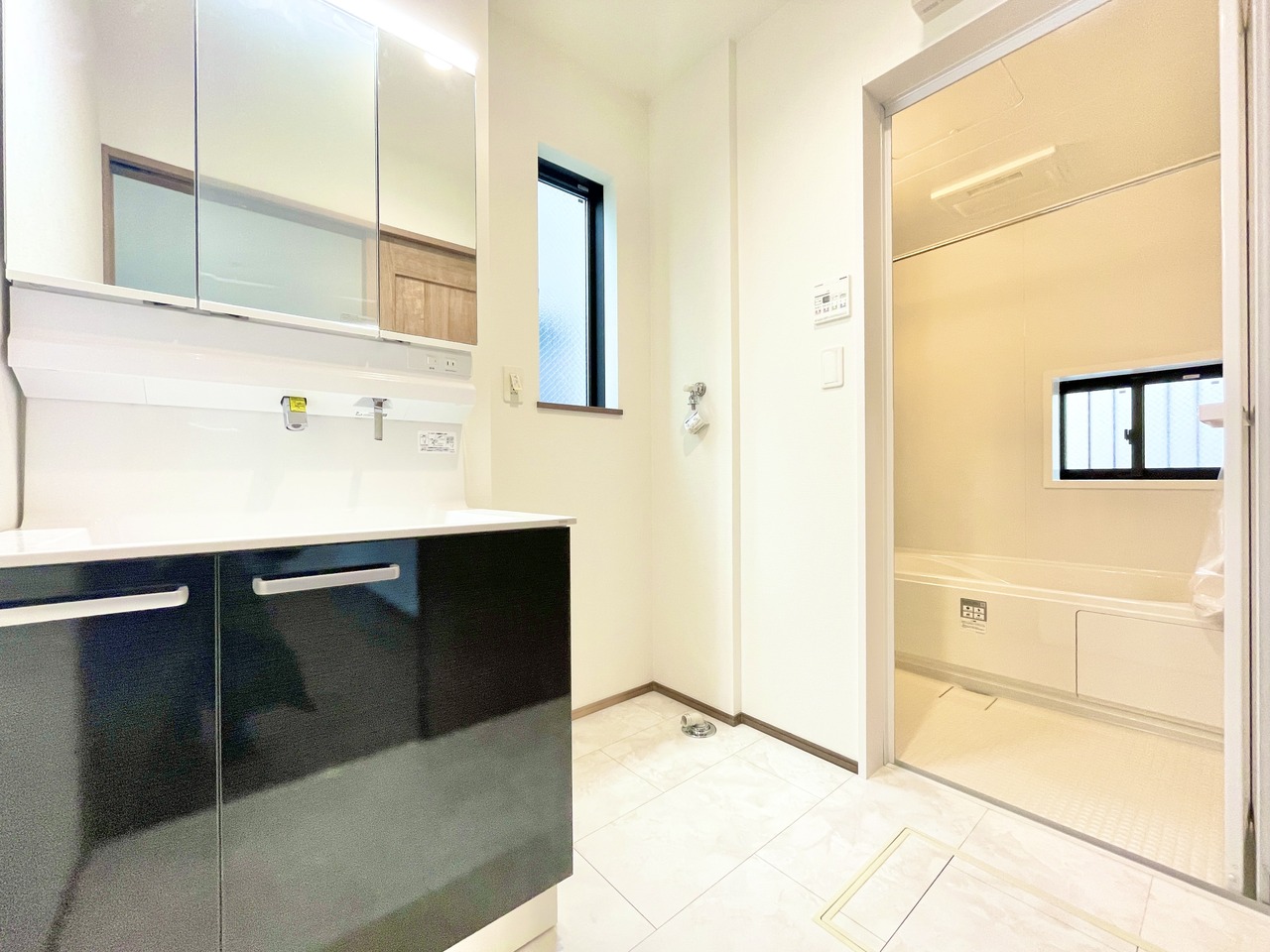 | 設備 | 公営水道、本下水、都市ガス システムキッチン(浄水器付き)・ユニットバス・浴室乾燥機付き・ウォシュレット・シャワー付き洗面化粧台・ペアガラス・テレビモニターフォン付き・全居室収納あり・床下収納あり・カースペース2台可能・庭 |