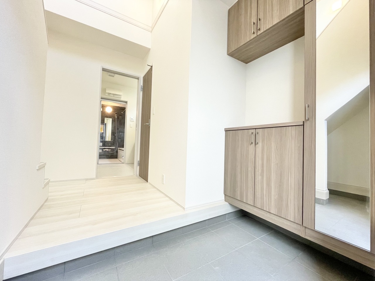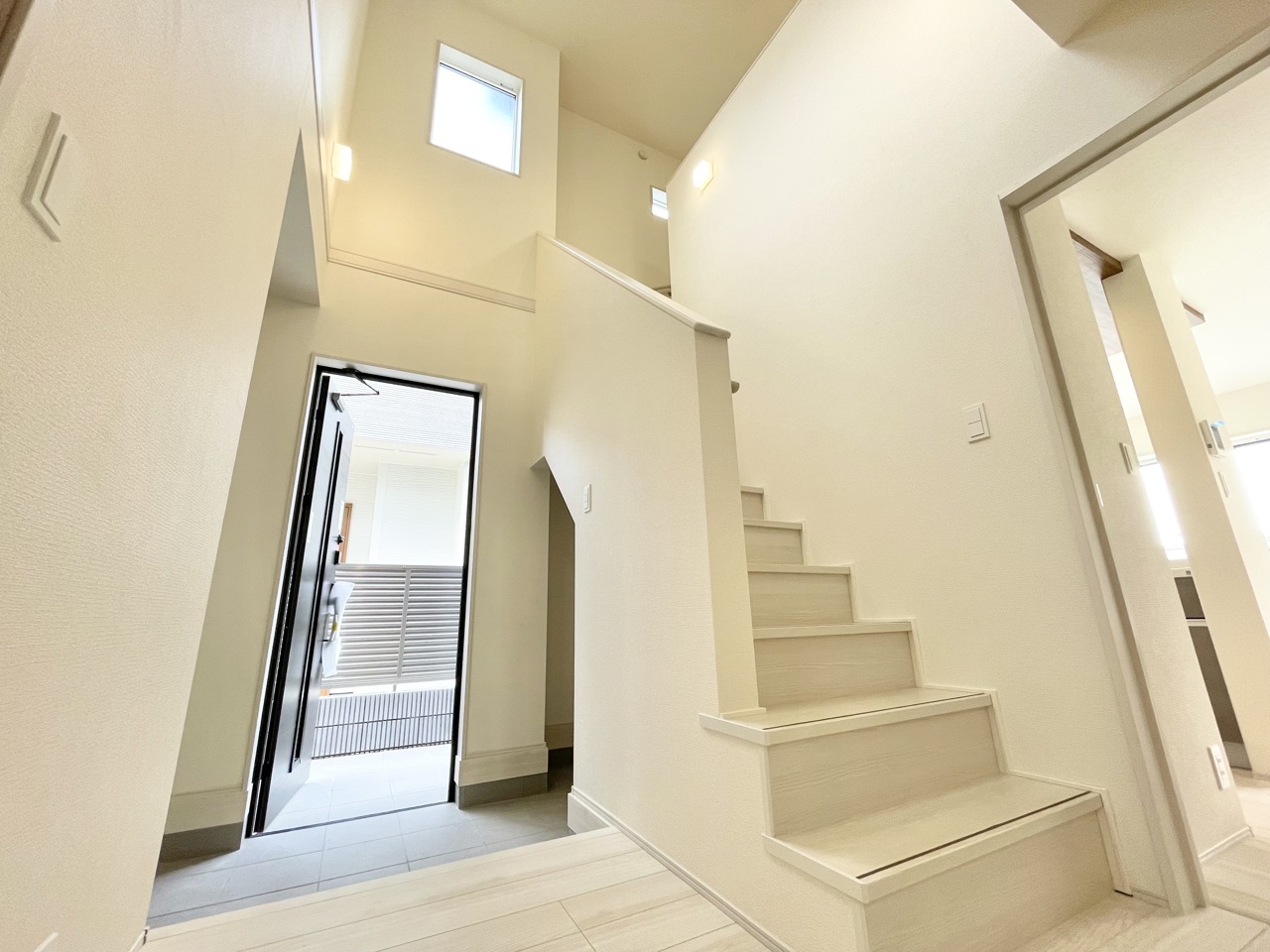 全棟玄関が吹き抜けとなっており、開放的な空間をお楽しみください。