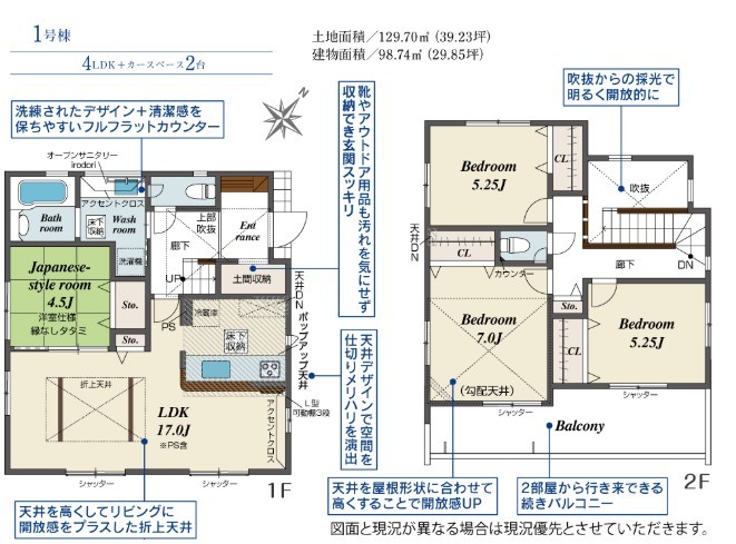 1号棟 ファミリータイプの4LDK ◆面を強化する耐震構造(筋交いにより横からの力に耐える『耐力壁』 ◆Low-E複層ガラス採用で、省エネ・光熱費カットにも貢献します。