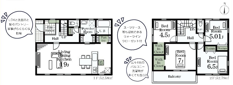 ■各居室収納、WIC、パントリーなどの収納が充実の間取り
