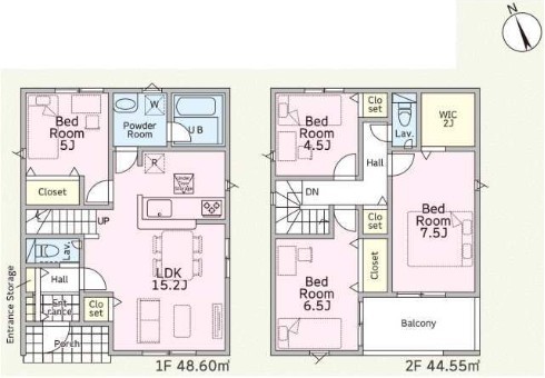 | 間取 | 4LDK (洋室5帖、LDK15.2帖、洋室7.5帖、洋室6.5帖、洋室4.5帖) | ||