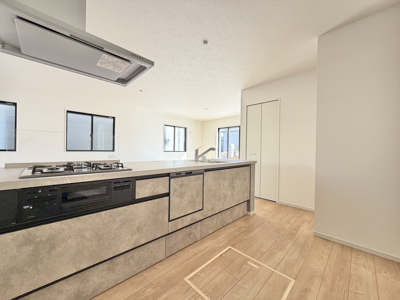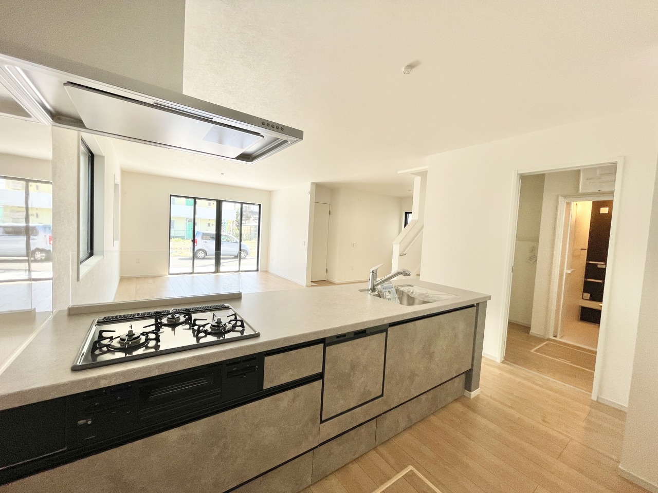 2号棟 人気の独立型のシステムオープンキッチンで開放的な空間です。家事動線がラクラクです。