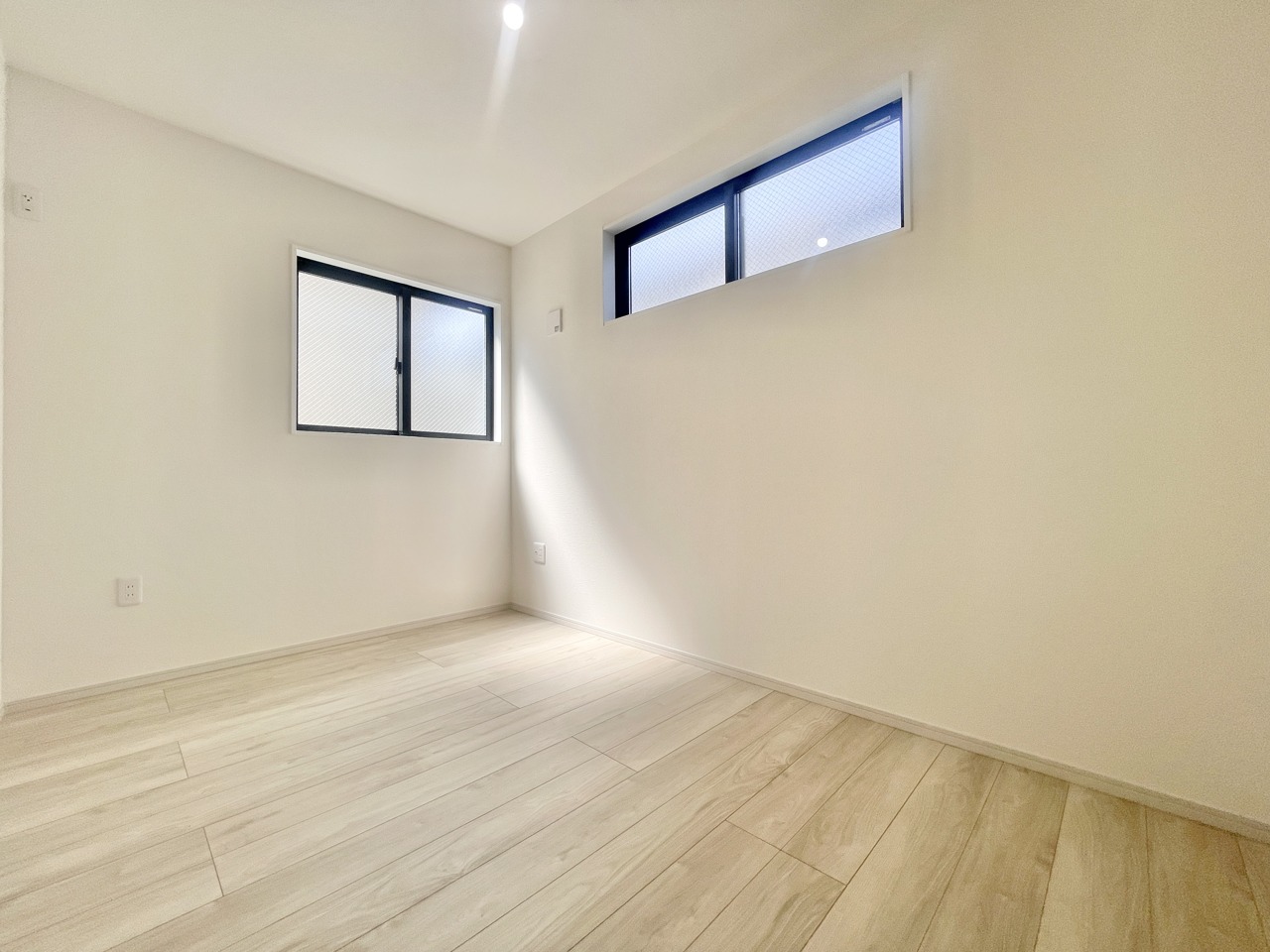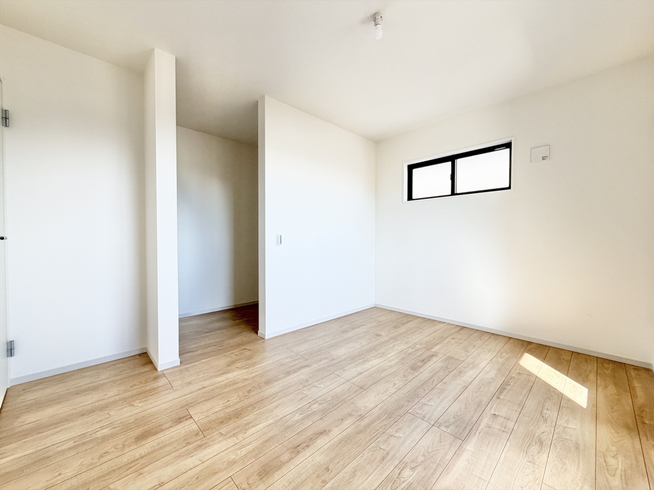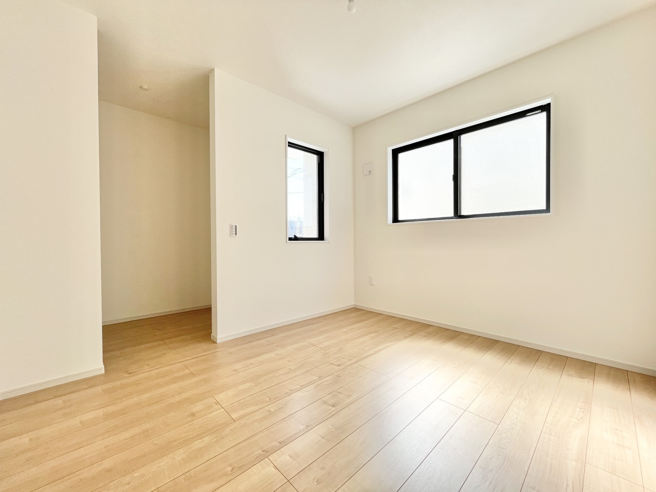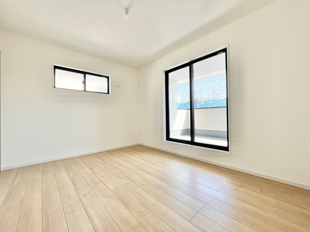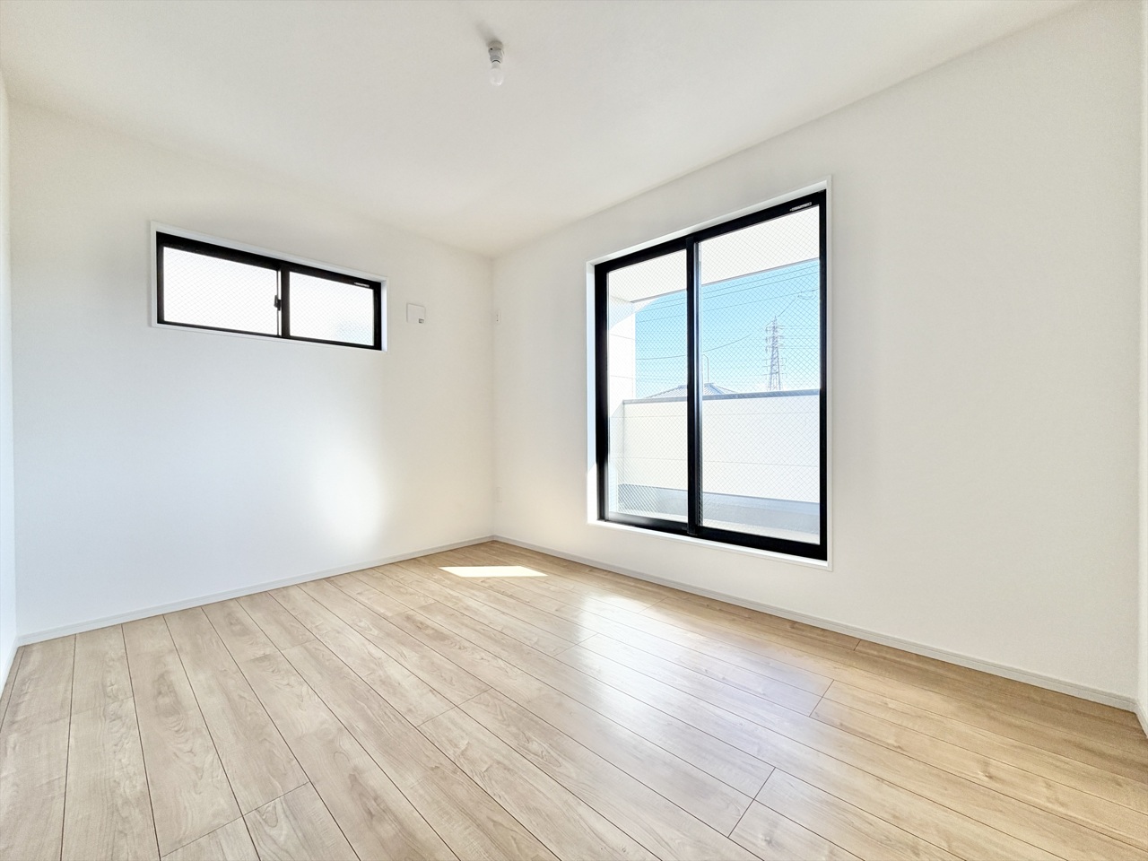 2号棟 2階約8.5帖の主寝室。キングベッドも置ける広々とした間取り。南向きで陽当たり良好です。