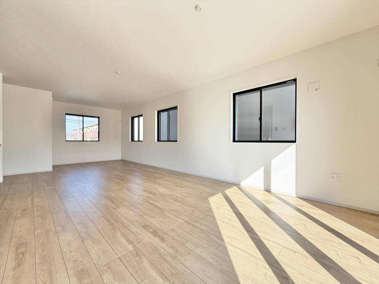 2号棟 LDKは約23帖の広々設計。3面採光となっており陽当たりと開放感が良好です。まずは一度ご覧になってみてください。