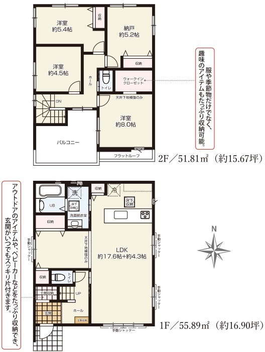 ・WICが2箇所ある収納豊富な間取り