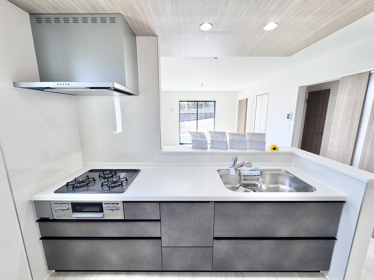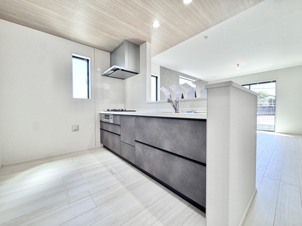 2号棟 リビング・ダイニング全体を見渡せる設計で、小さなお子さまを見守りながら家事ができる安心感があります。