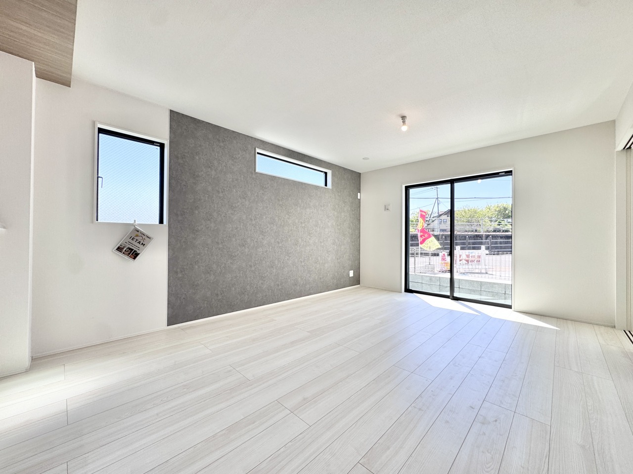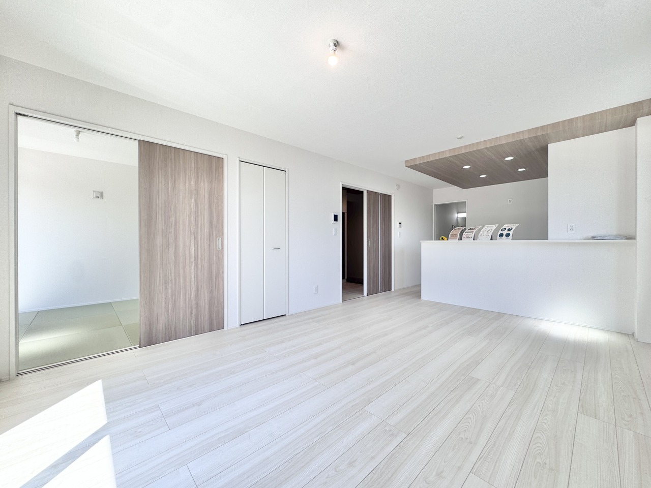 2号棟 日中は照明に頼らず過ごせるほど明るく、室内全体に開放感をもたらします。四季の移ろいを感じながら、穏やかな時間を楽しめる住まいです。