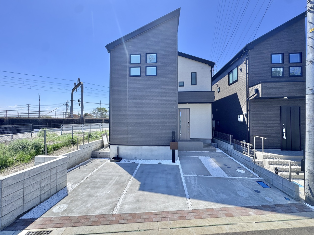 2号棟 【駐車2台可能】コンクリート仕上げの駐車スペースや、雑草が生えにくい砂利敷きなど、忙しいご家庭でも手間なくキレイを保てる工夫が施されています。