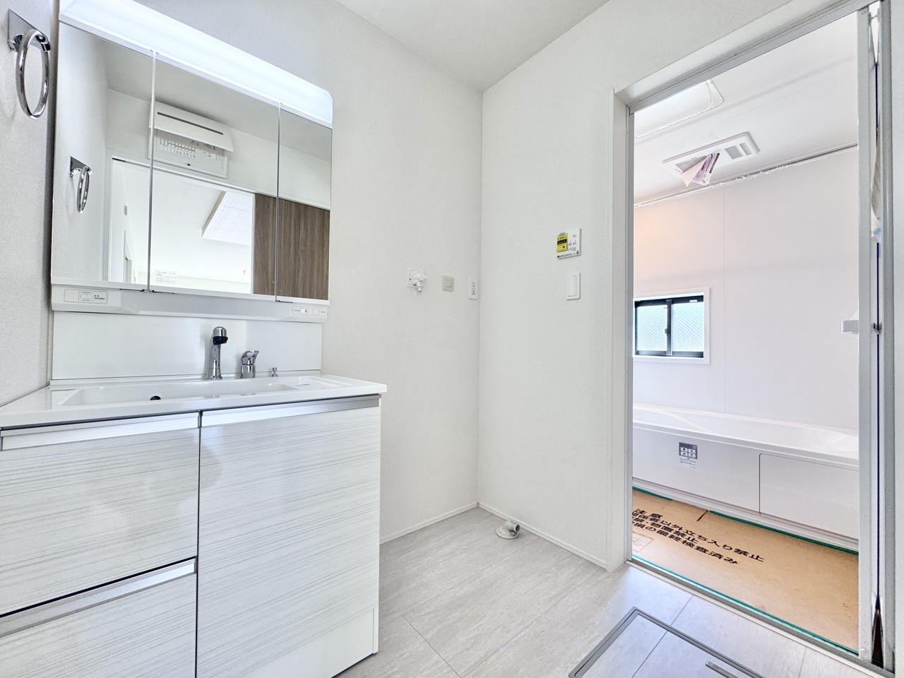 2号棟 使い勝手がいい洗面台と十分な収納で家族全員が使いやすい空間になっております◎