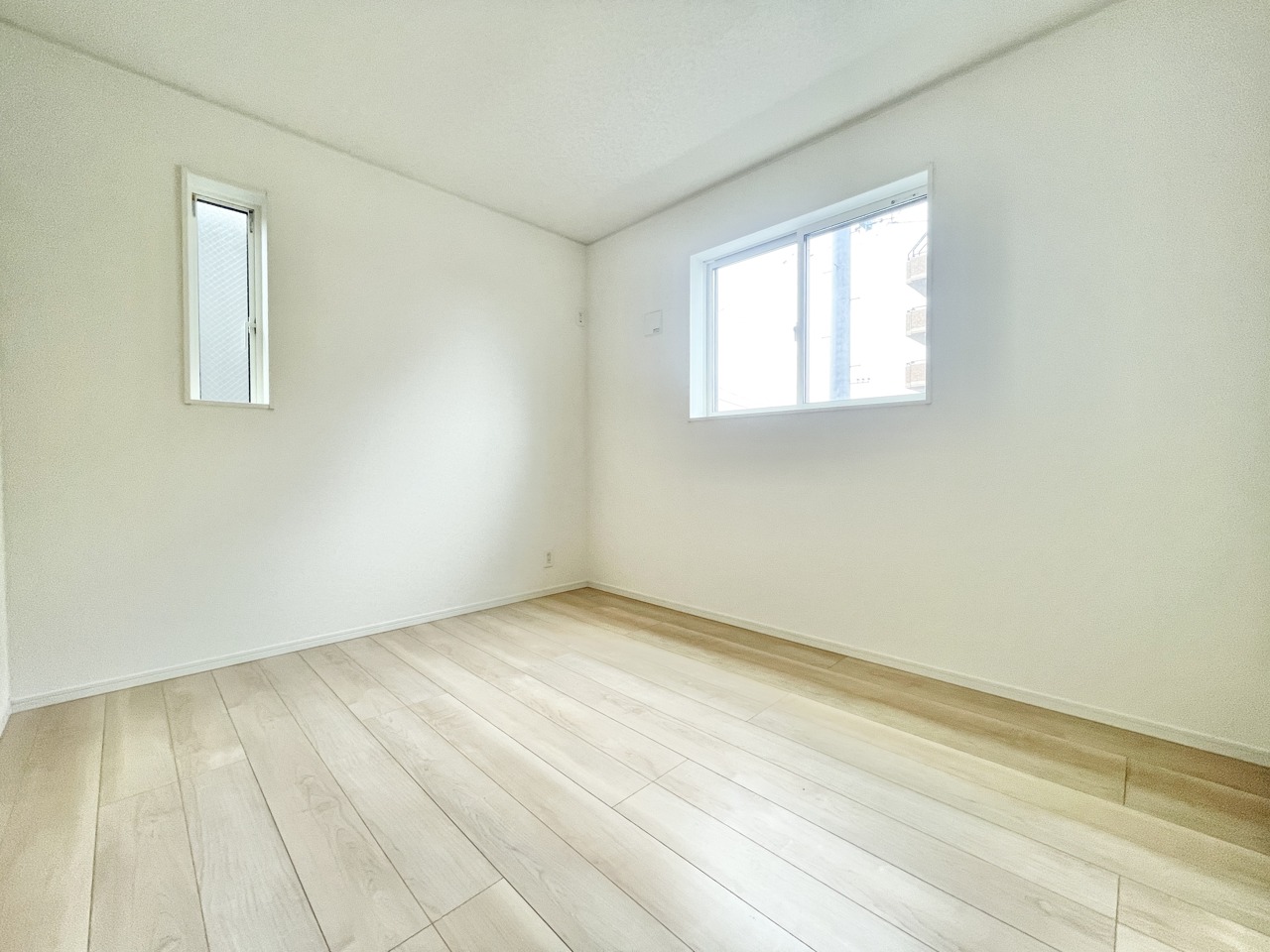 明るい二面採光で、毎日がちょっと特別に感じられる心地よい洋室。大きな窓からは爽やかな光が差し込み、どんなインテリアも似合うシンプルな空間です。寝室や子ども部屋としても使いやすく、新生活を快適にスタートできますよ♪