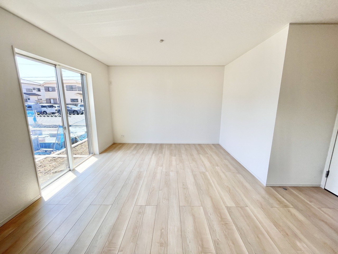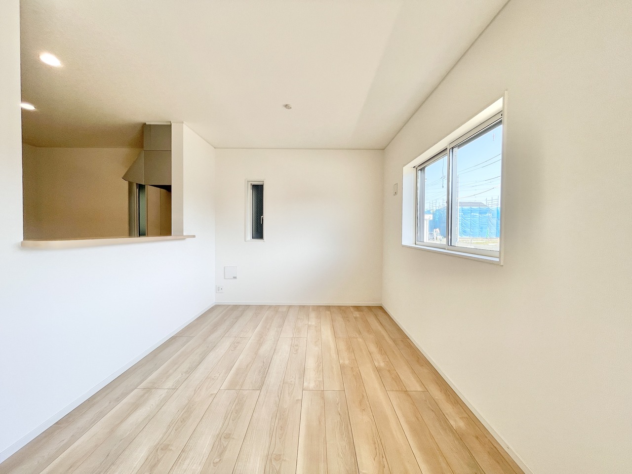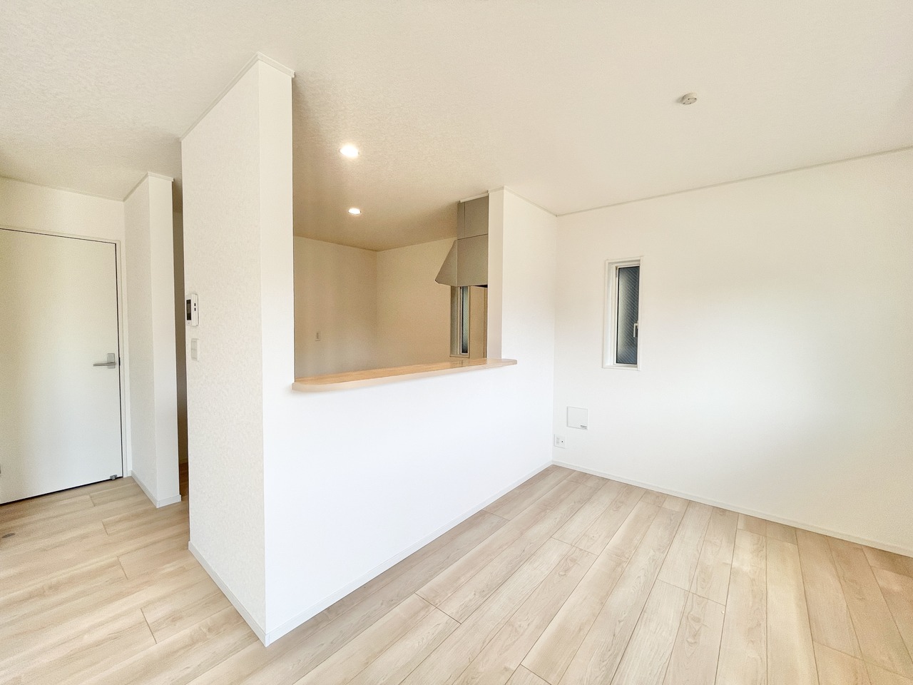 明るい光がたっぷり差し込む広々リビングは、家族みんながのびのび過ごせる心地よい空間。キッチンや階段への動線もスムーズで、毎日の暮らしがもっと快適に。自然と会話が生まれる、あたたかい住まいです。