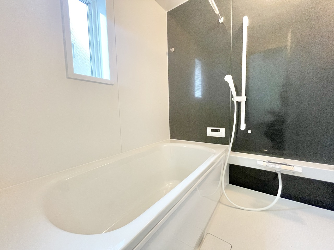 ■浴室乾燥機付きユニットバス(追炊き付き) ユニットバスは全てが浴室のために設計されているため、掃除のしやすさやカビの生えにくさ汚れにくさに特化しています。 素材は汚れが付きにくいものが使用され、お手入れが最小限に抑えられる浴室となっております。
