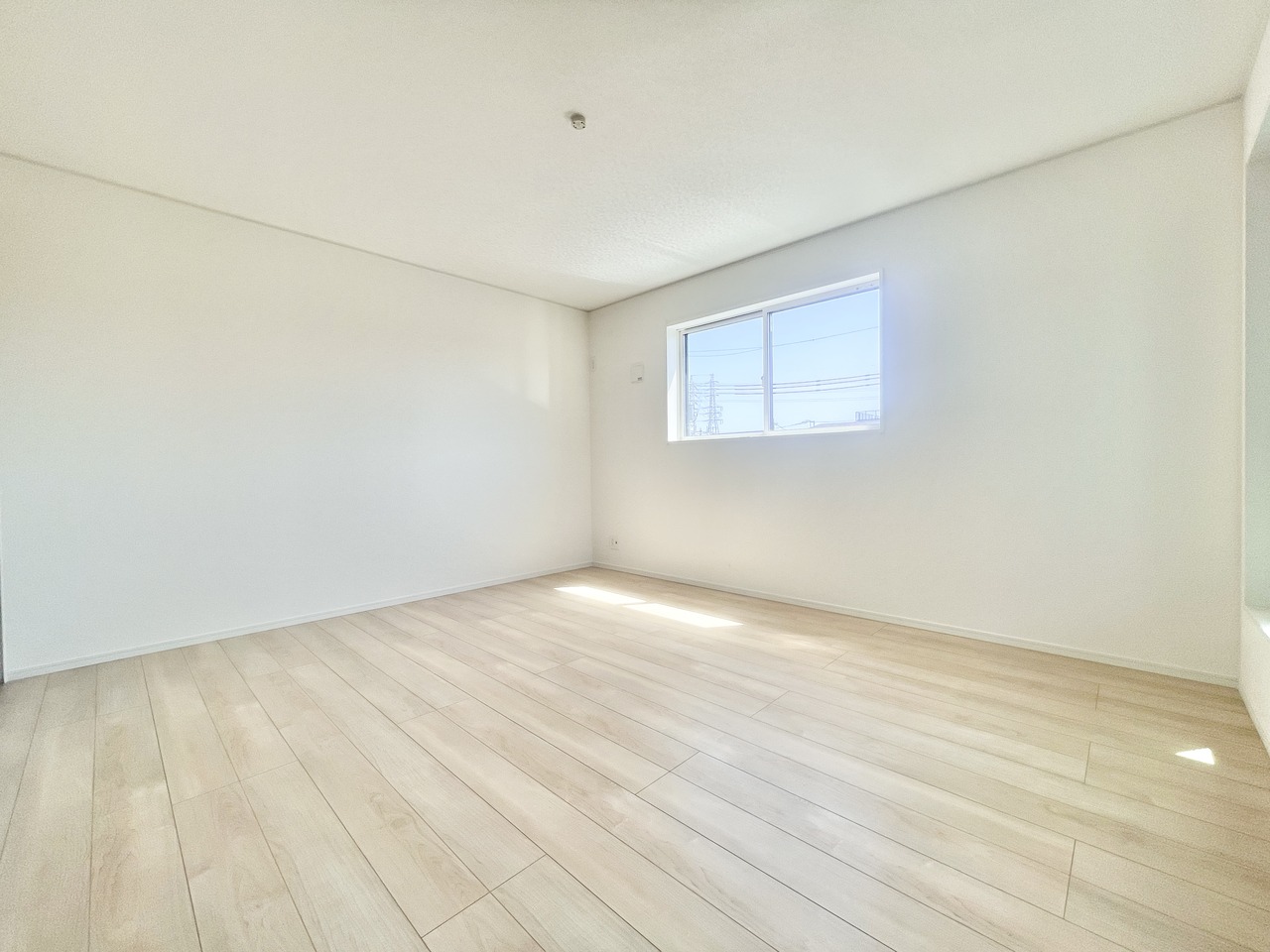 2号棟 大きな窓から自然光が差し込む、明るく開放的な洋室。家具の配置がしやすいシンプルな間取りで、寝室や子ども部屋、ワークスペースなど多用途にお使いいただけます。