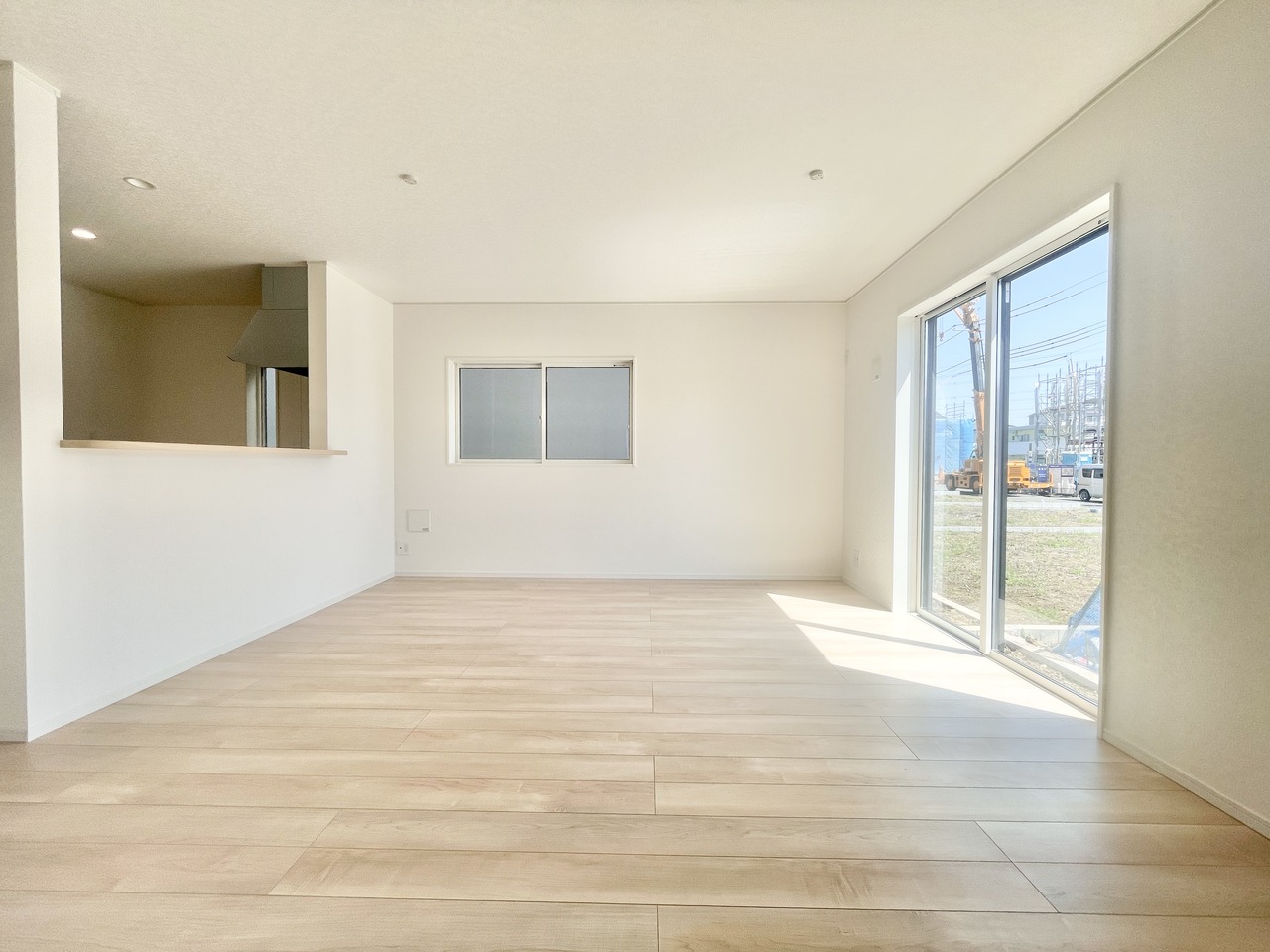 3号棟 視界が広がるワイドなリビング空間は、小さなお子様がいても見守りやすい設計。キッチンからもリビングを見渡せ、家族の気配を感じながら家事ができます。