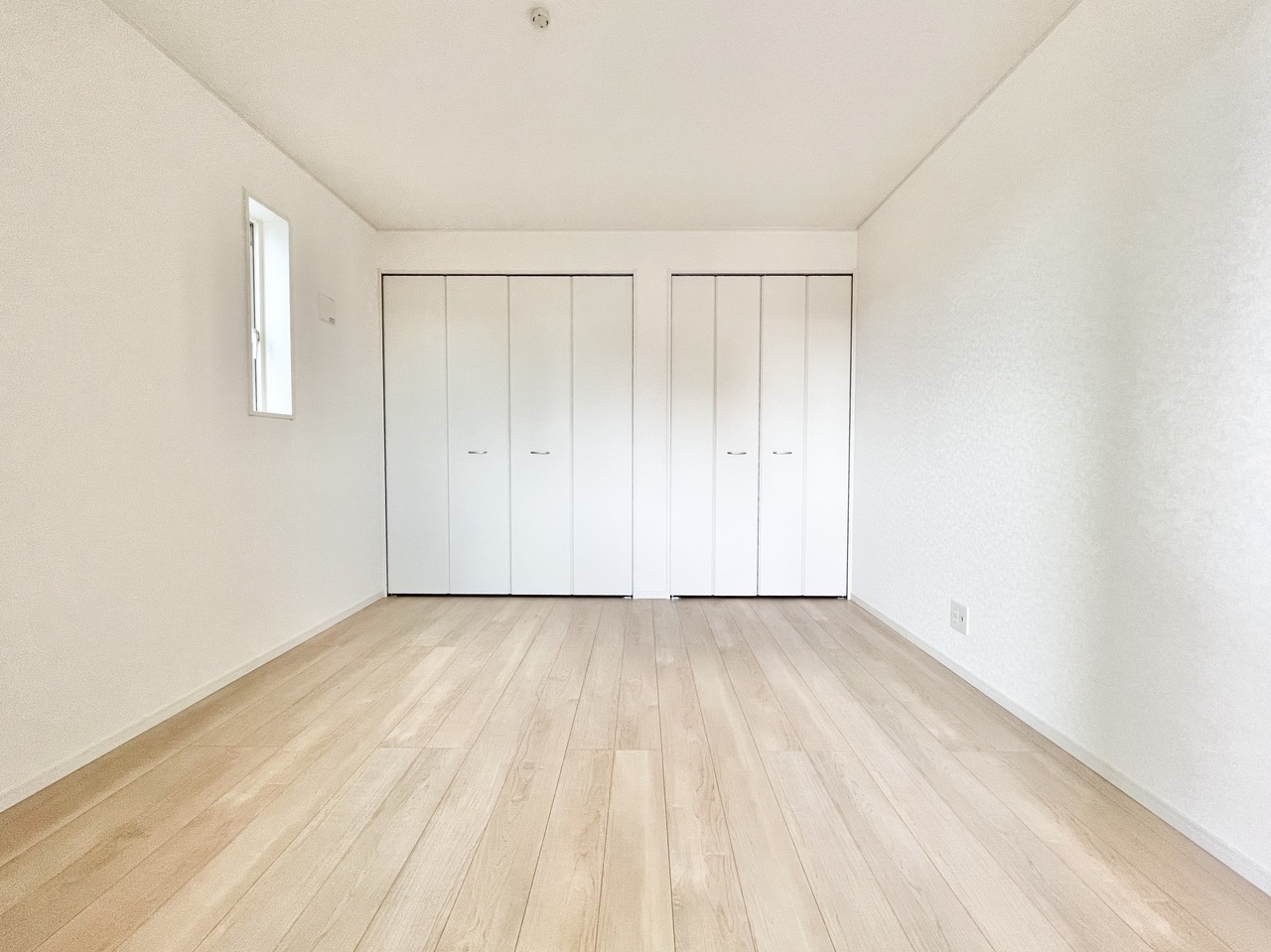 4号棟 明るい光がたっぷり入る心地よい洋室。広々クローゼットで収納もばっちり!シンプルで使いやすい空間だから、子ども部屋にも寝室にもぴったりです。