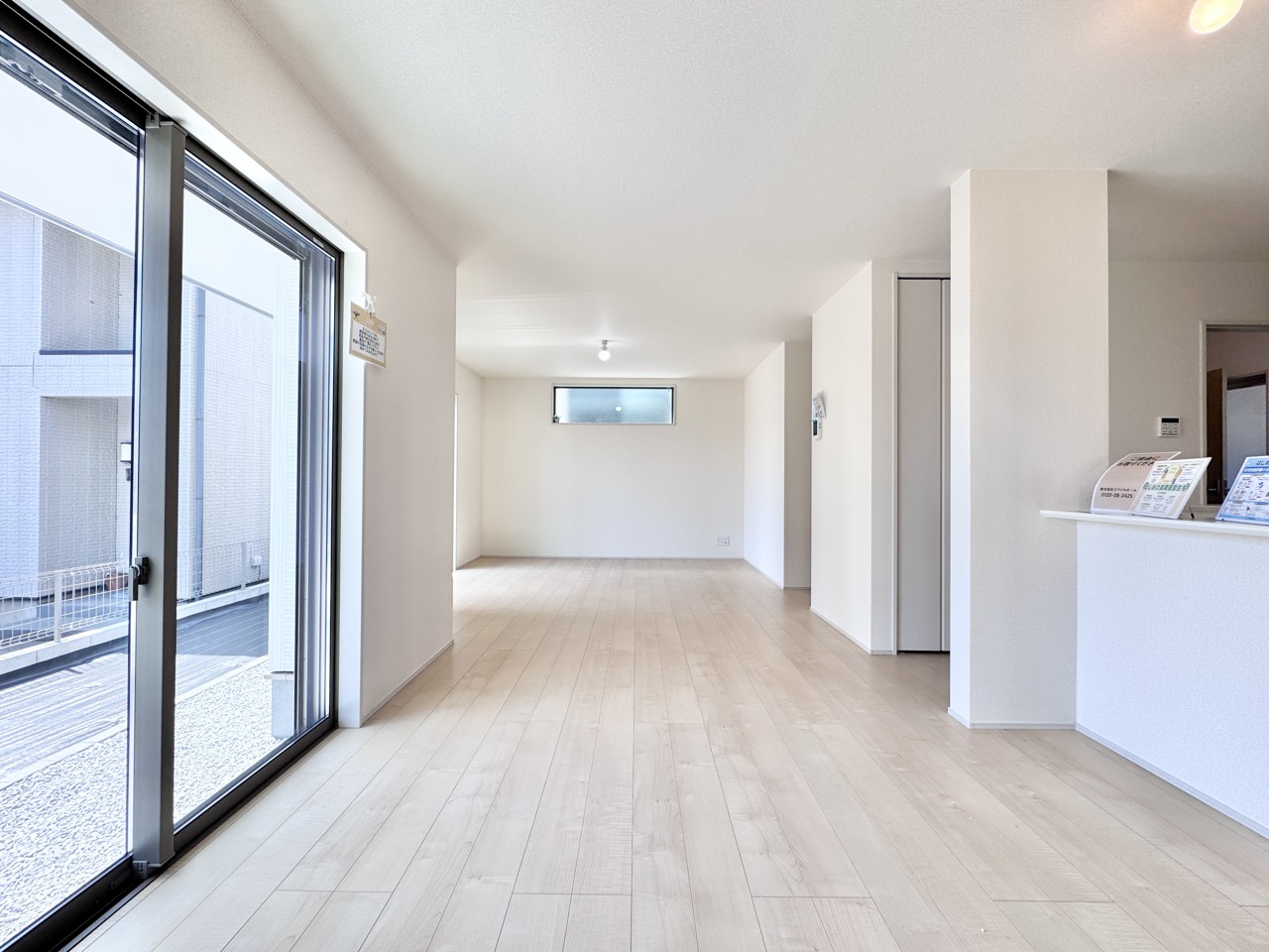 2号棟 開放感あるリビングは、上質な空間設計が魅力。自然光がたっぷり差し込む心地よい空間で、贅沢なくつろぎの時間を演出します。