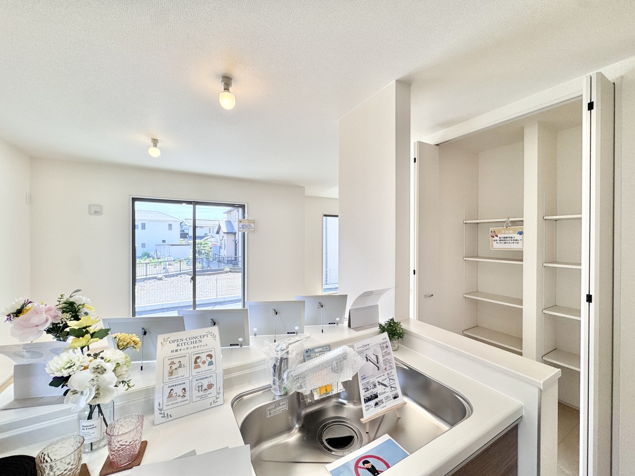2号棟 リビング一部にカウンターがあり、お子様の勉強スペースとして家事をしながら様子を見ることもできます◎