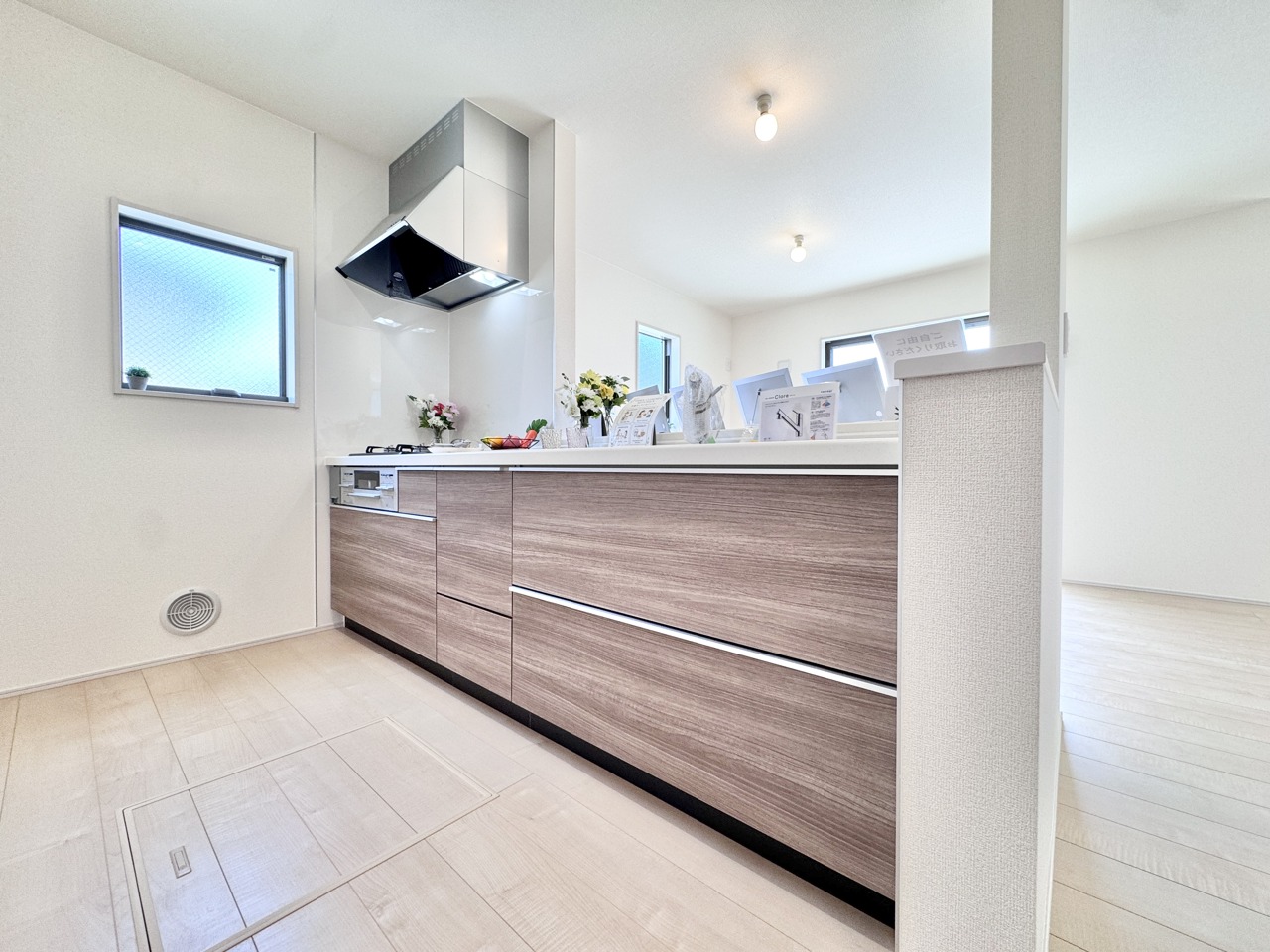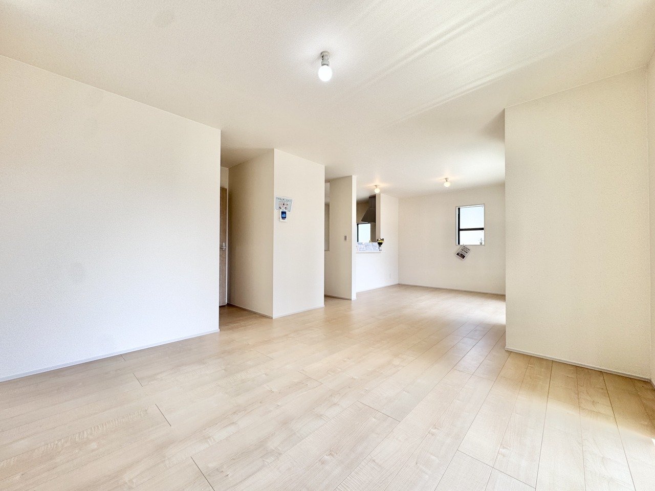 2号棟 リビング・ダイニング全体を見渡せる設計で、小さなお子さまを見守りながら家事ができる安心感があります。