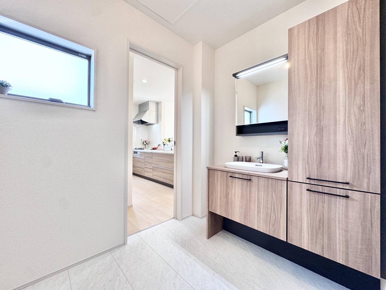 2号棟 収納もたっぷりご用意しているので、洗面まわりはいつでもスッキリ。
