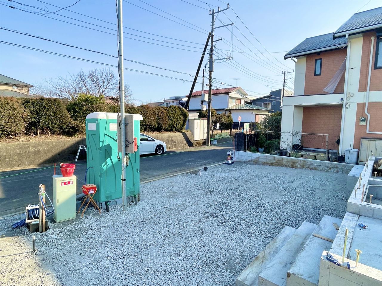 2号棟 整った分譲地に基礎が並び、これから街並みが生まれていく現地です。周辺は落ち着いた住宅街で、陽当たりや風通しもチェックしやすい環境。完成後の暮らしを想像しながら、住み心地や動線をイメージできる今だけのタイミングです。