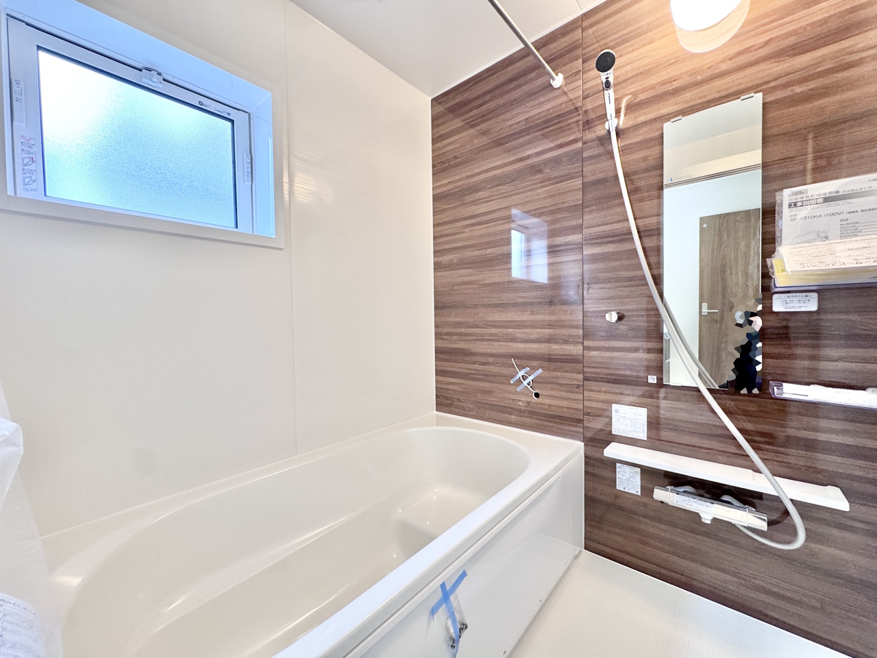 窓付きの浴室暖房換気乾燥機付きバスルーム。1坪以上でゆったりできる空間