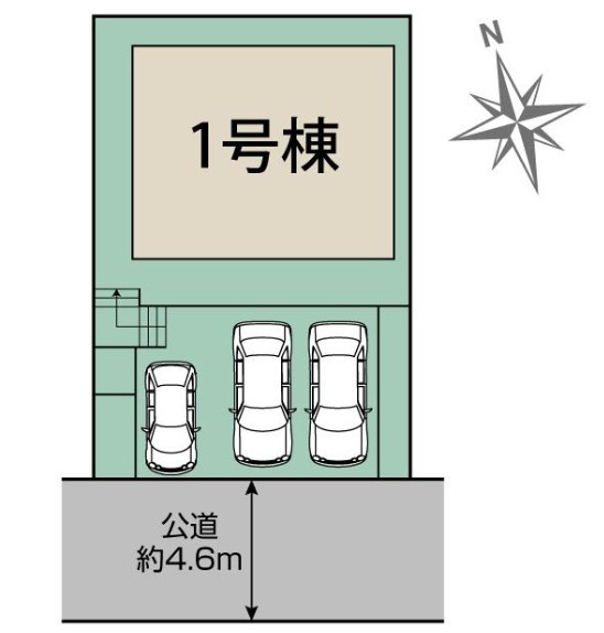 南側の前面道路は約4.6mのゆとりある交通量が比較的少ない道路のため、駐車も比較的ストレスなく可能です。