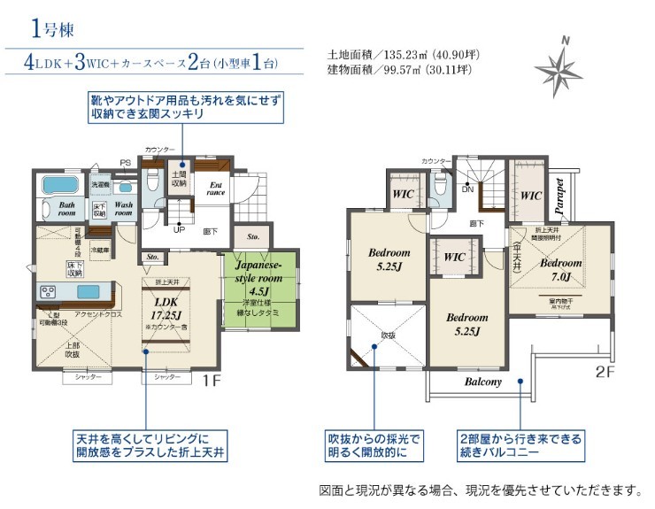 注文建築に劣らない仕様の新築戸建となっております。玄関土間収納や全室WIC、吹き抜けや勾配天井など魅力溢れます。