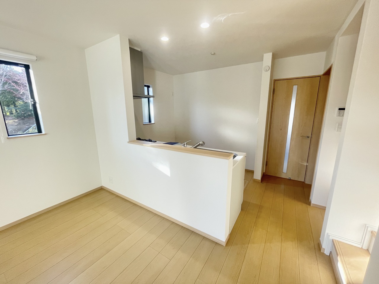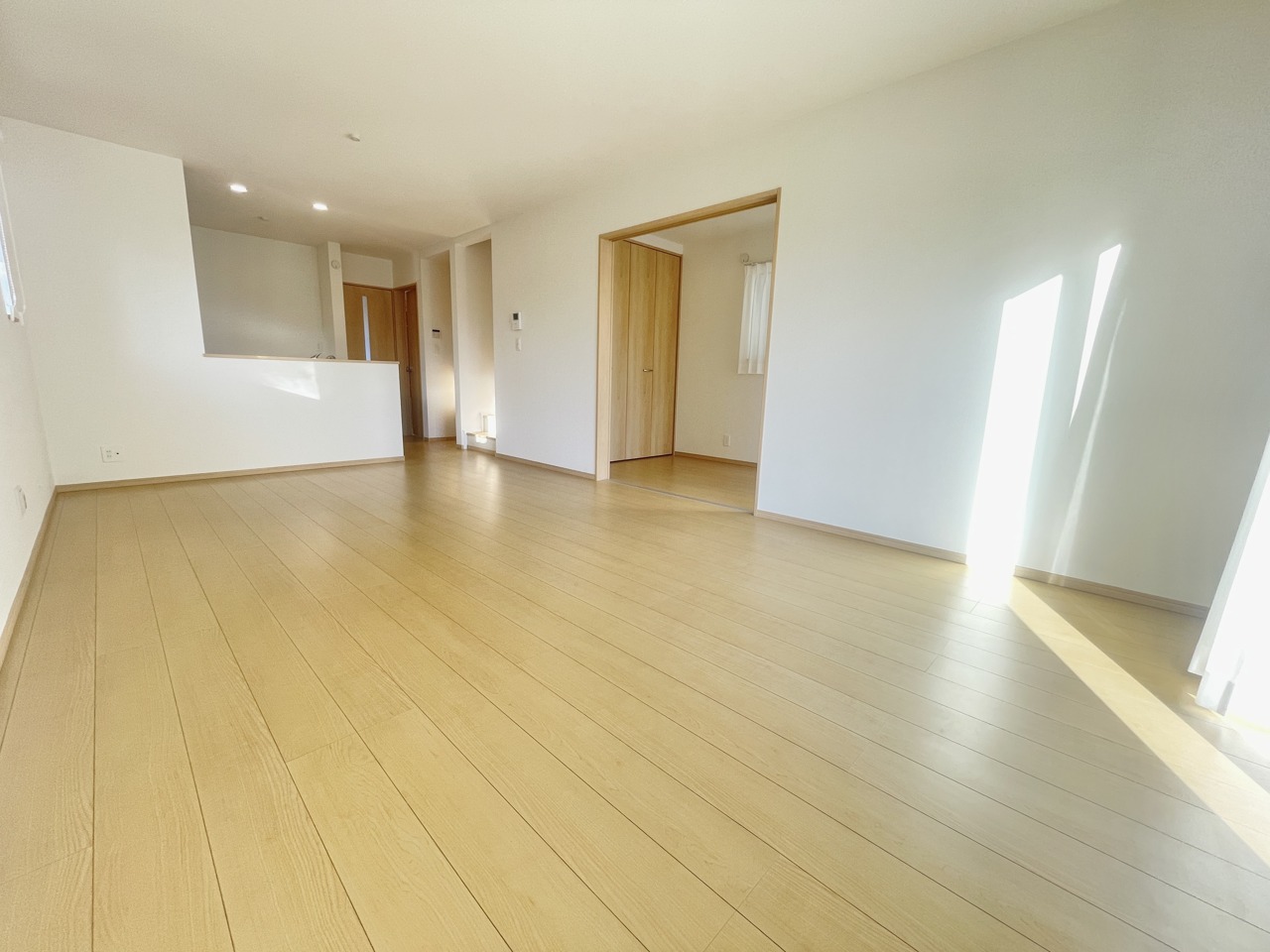 約17帖の南向きの陽当たりと開放感が良好のLDK。LDK含め全居室が2面採光となっており建物全体が明るく感じられます。
