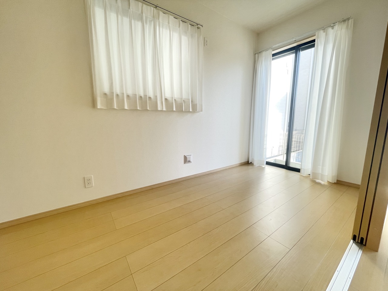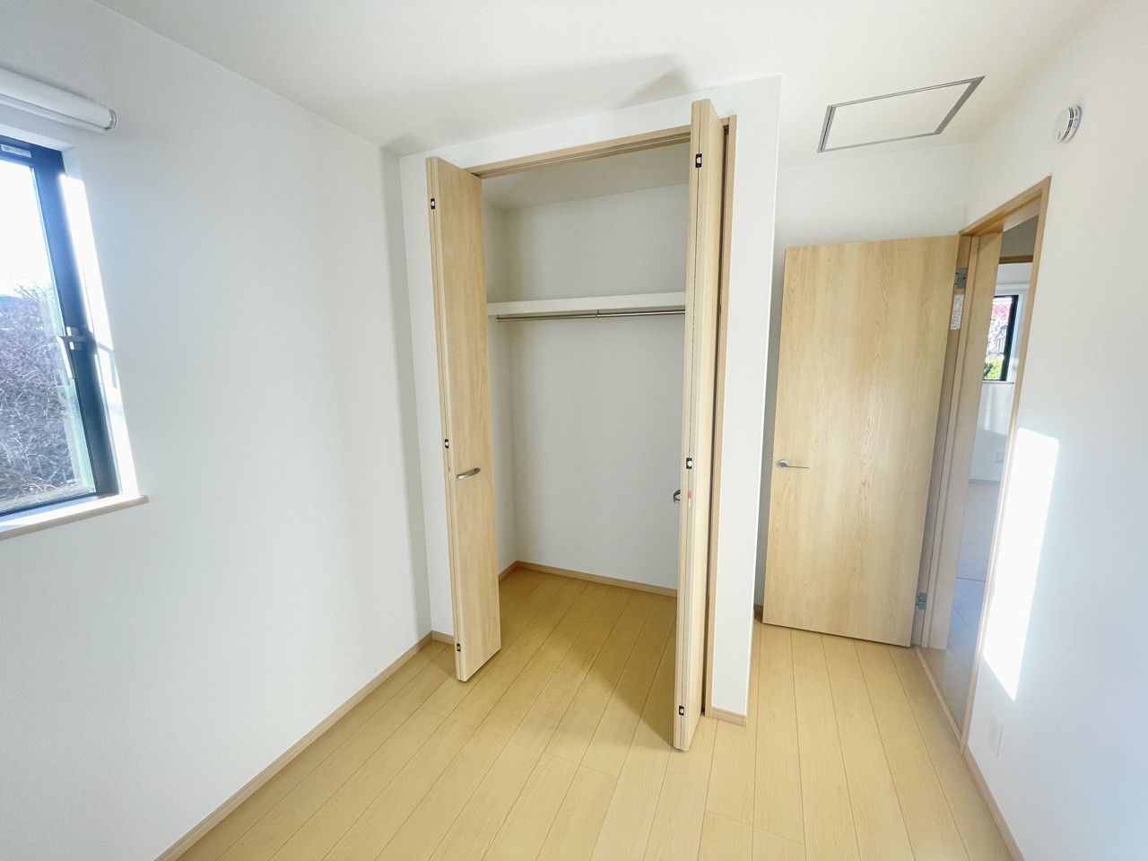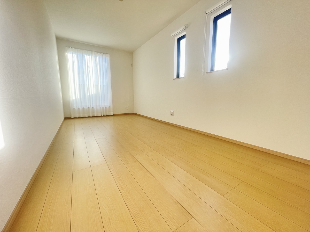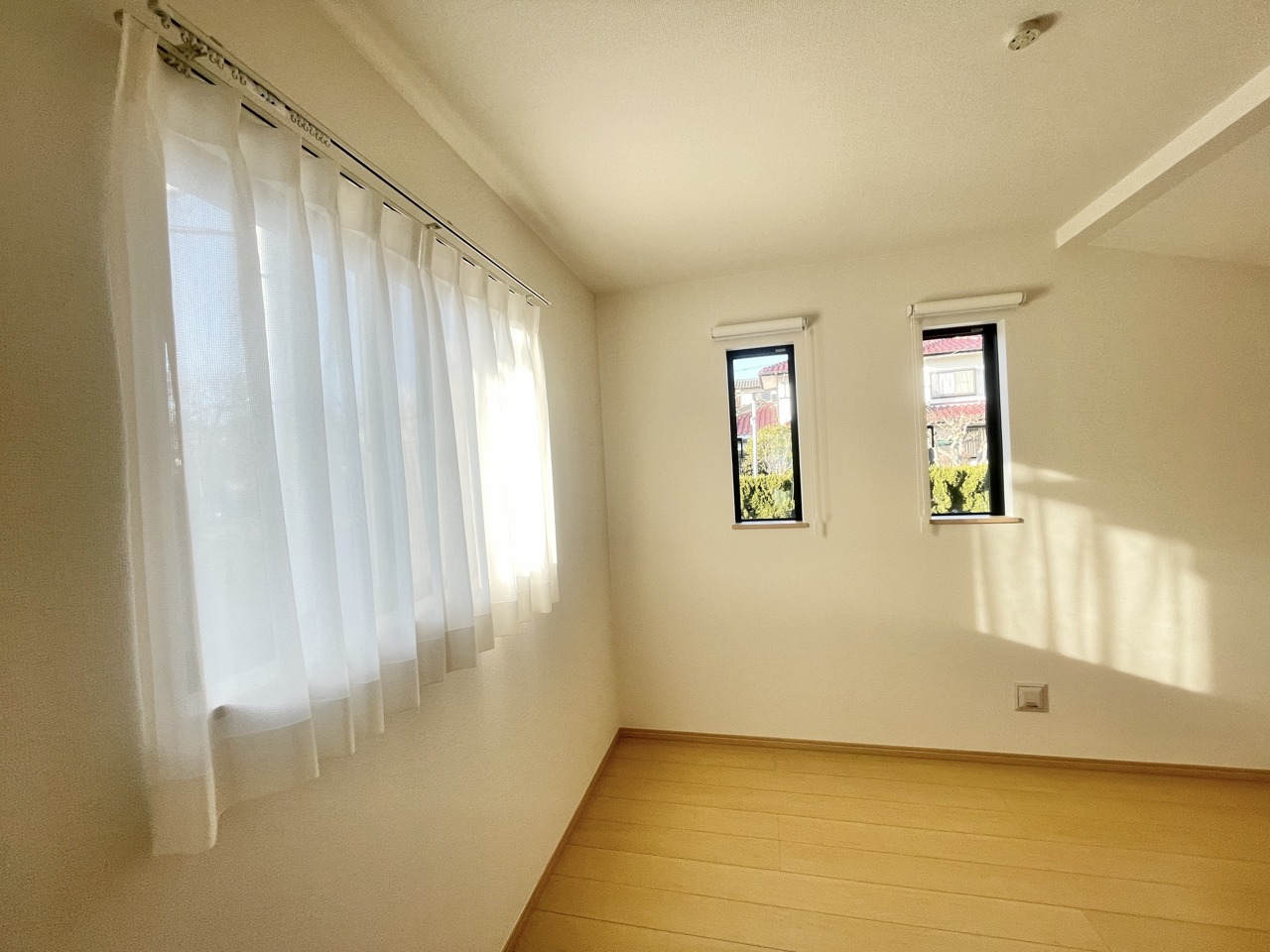 2階約5.2帖の洋室。全居室2面採光となっており陽当たりと開放感が良好で建物全体も明るく感じられます。