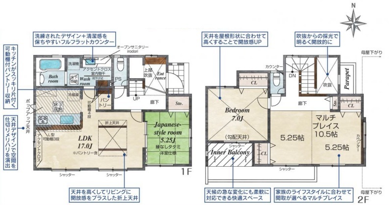 | 間取 | 3LDK (和室5.25帖、LDK17帖、洋室10.5帖、洋室7帖) | ||
