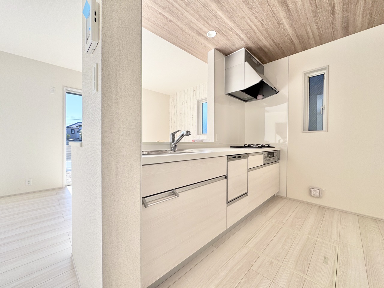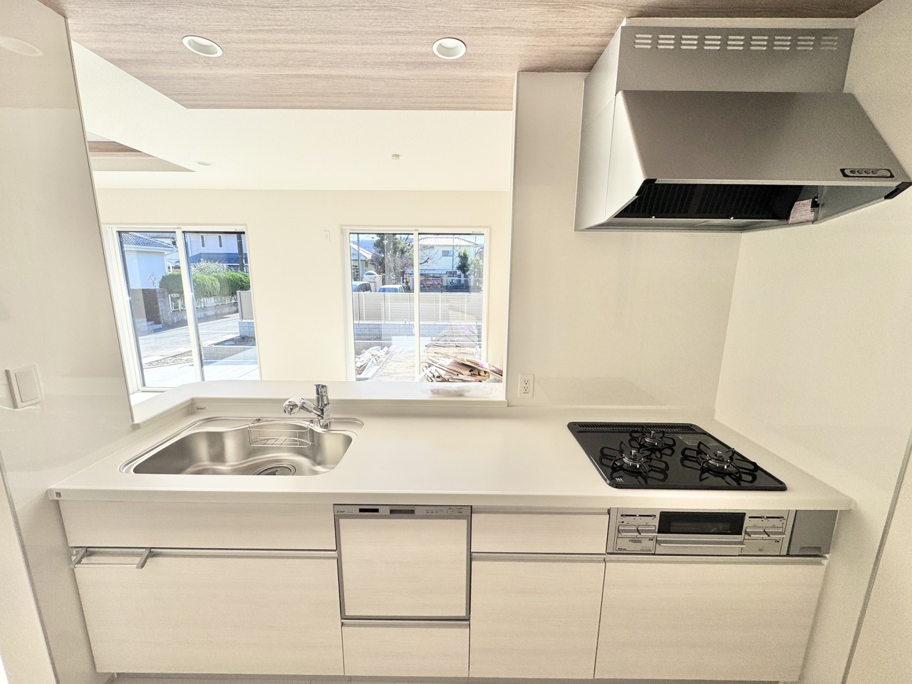食洗機や浄水器、三口コンロなど、毎日の家事を効率的にサポートする充実設備も標準装備。