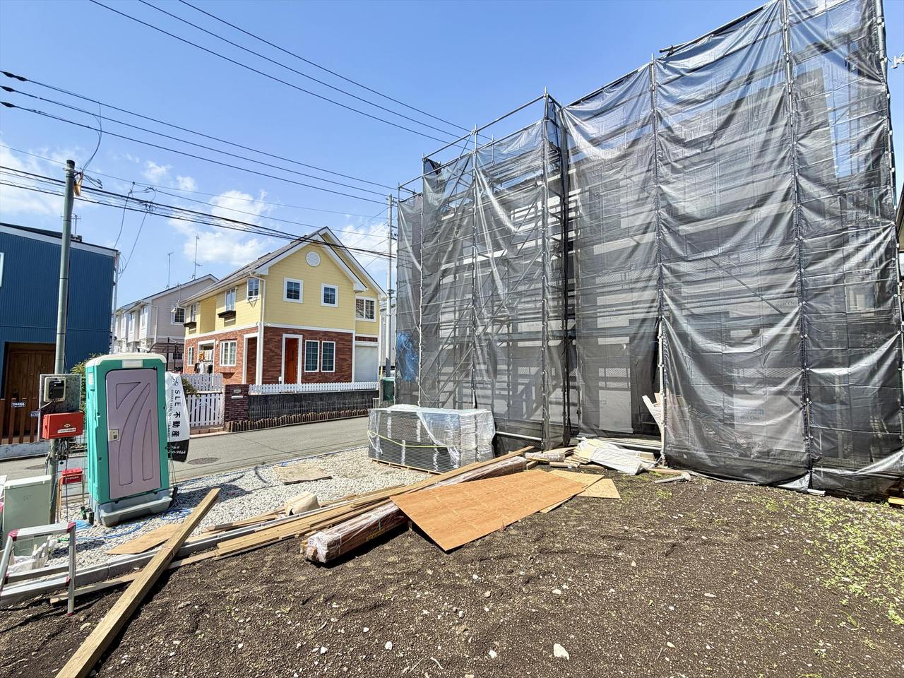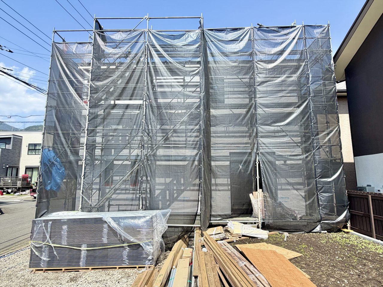 ただいま建築中!青空の下で、あなたの新しい暮らしが着々と形になっています。耐震+制震の安心構造で、ご家族の毎日をしっかり守る住まい。完成までのワクワクも一緒に楽しめる、“未来が見える”おうちです。