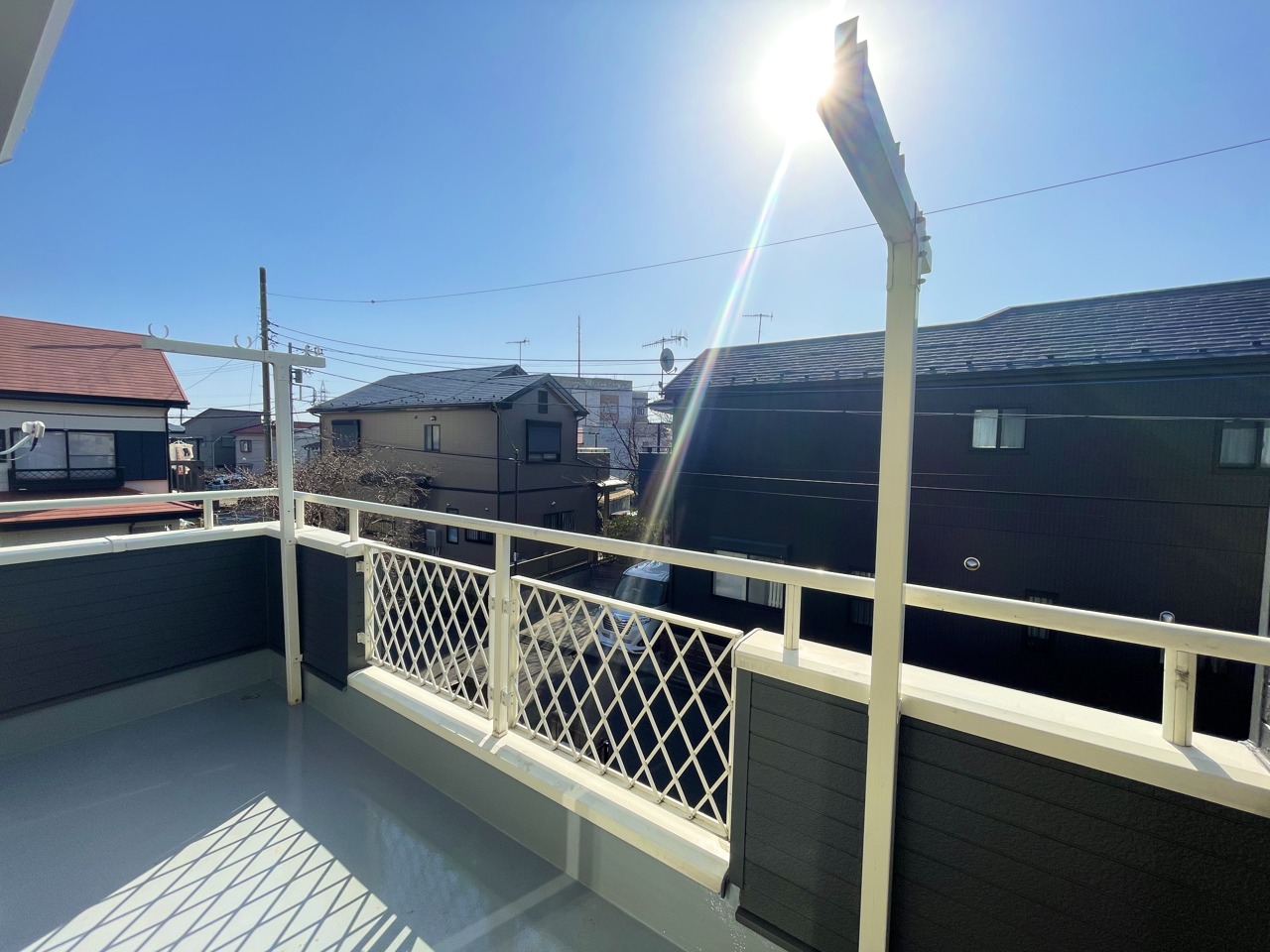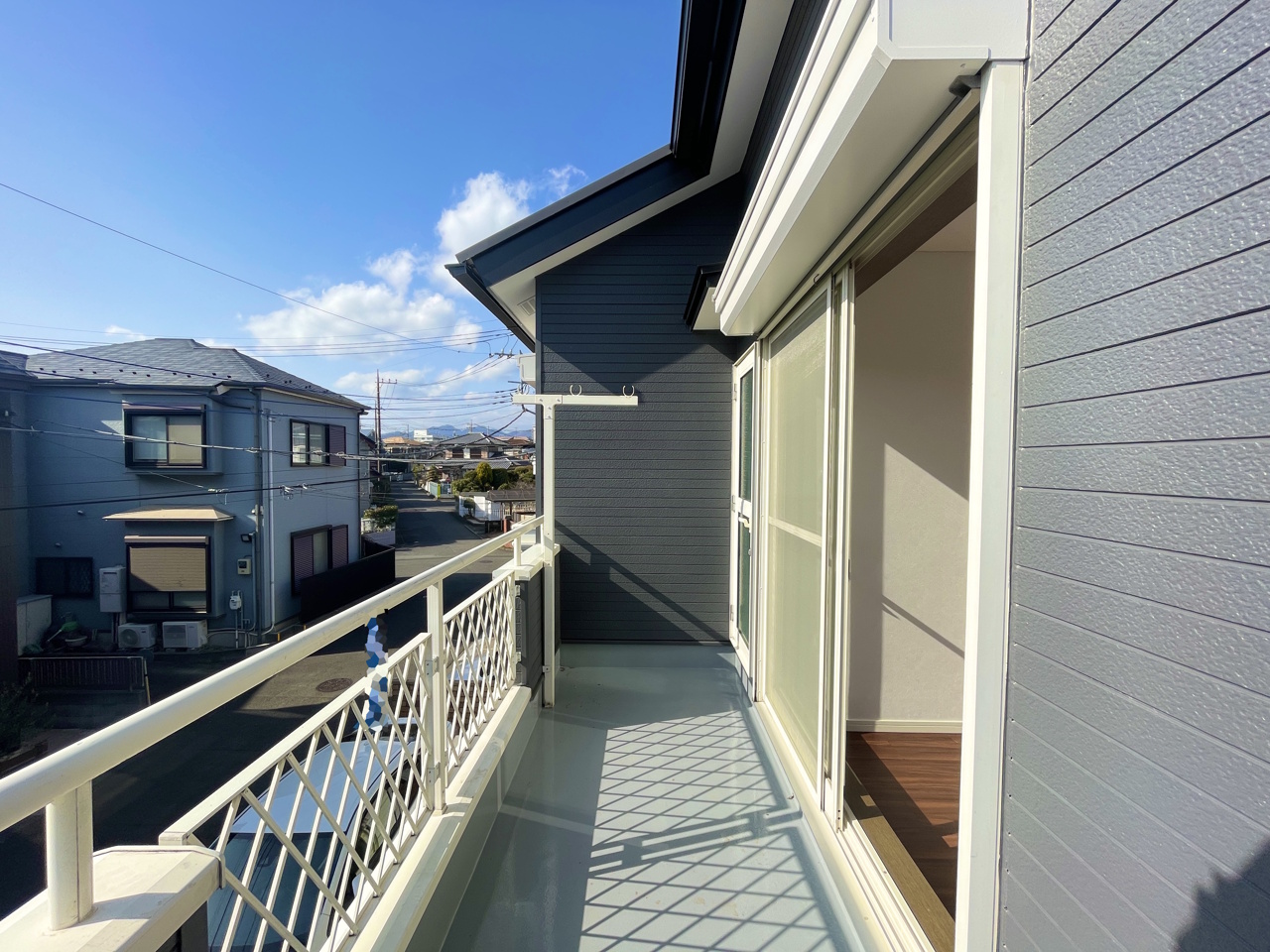 2階南西向きの陽当たり良好のバルコニー。洗濯物も良く乾きそうです。