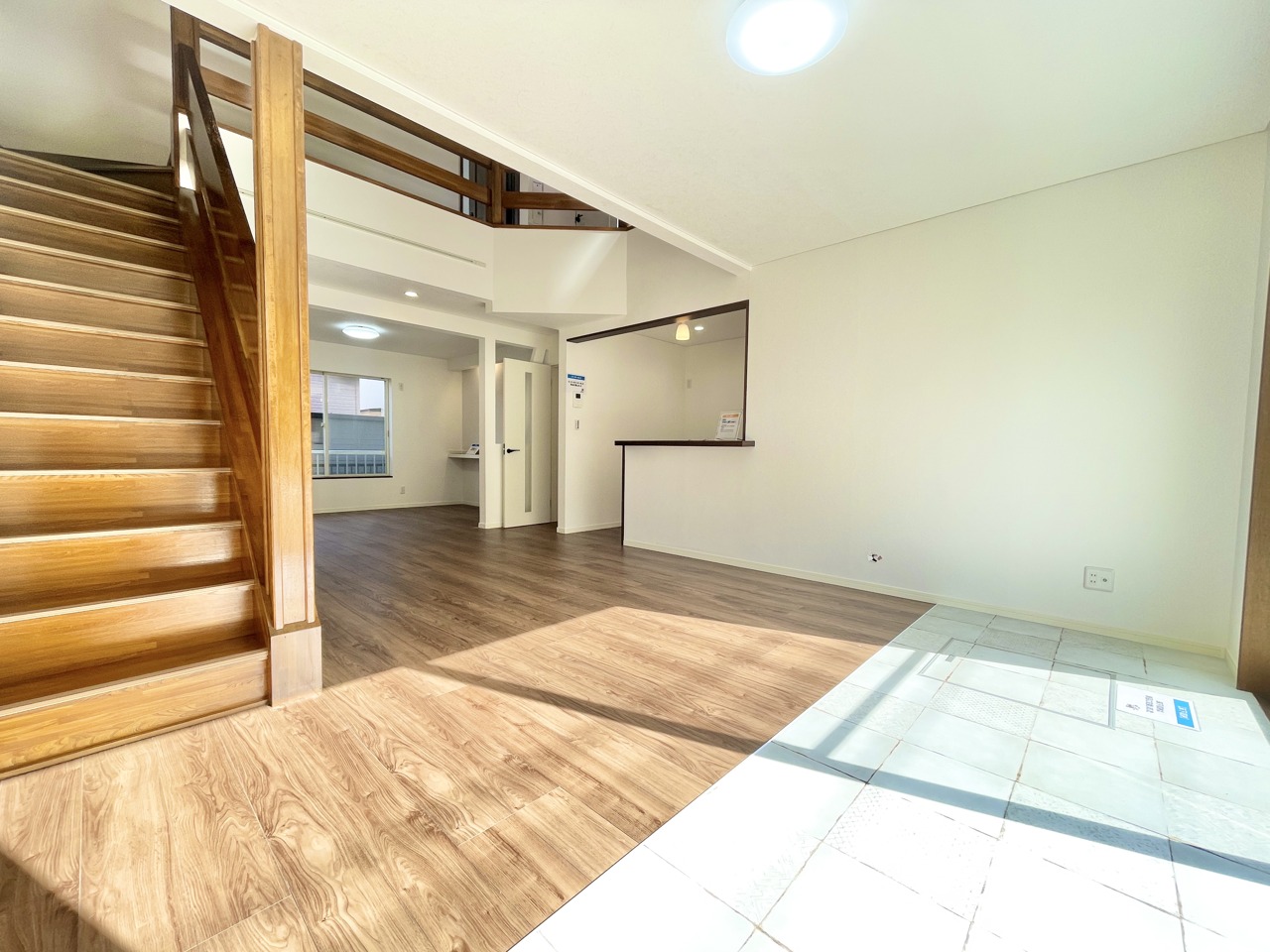 開放的な吹抜けがあります。吹抜けがあることで建物全体が明るく感じられ、広々とした空間を演出。