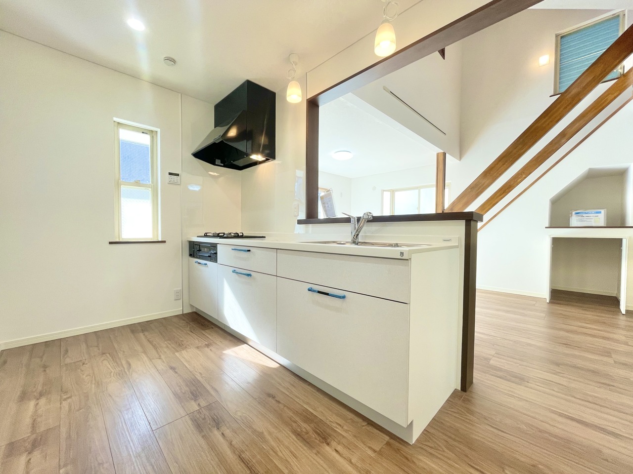新規取り換え済みの対面式システムキッチン。リフォームで生まれ変わった注文住宅中古戸建。是非一度ご覧になってみてください。