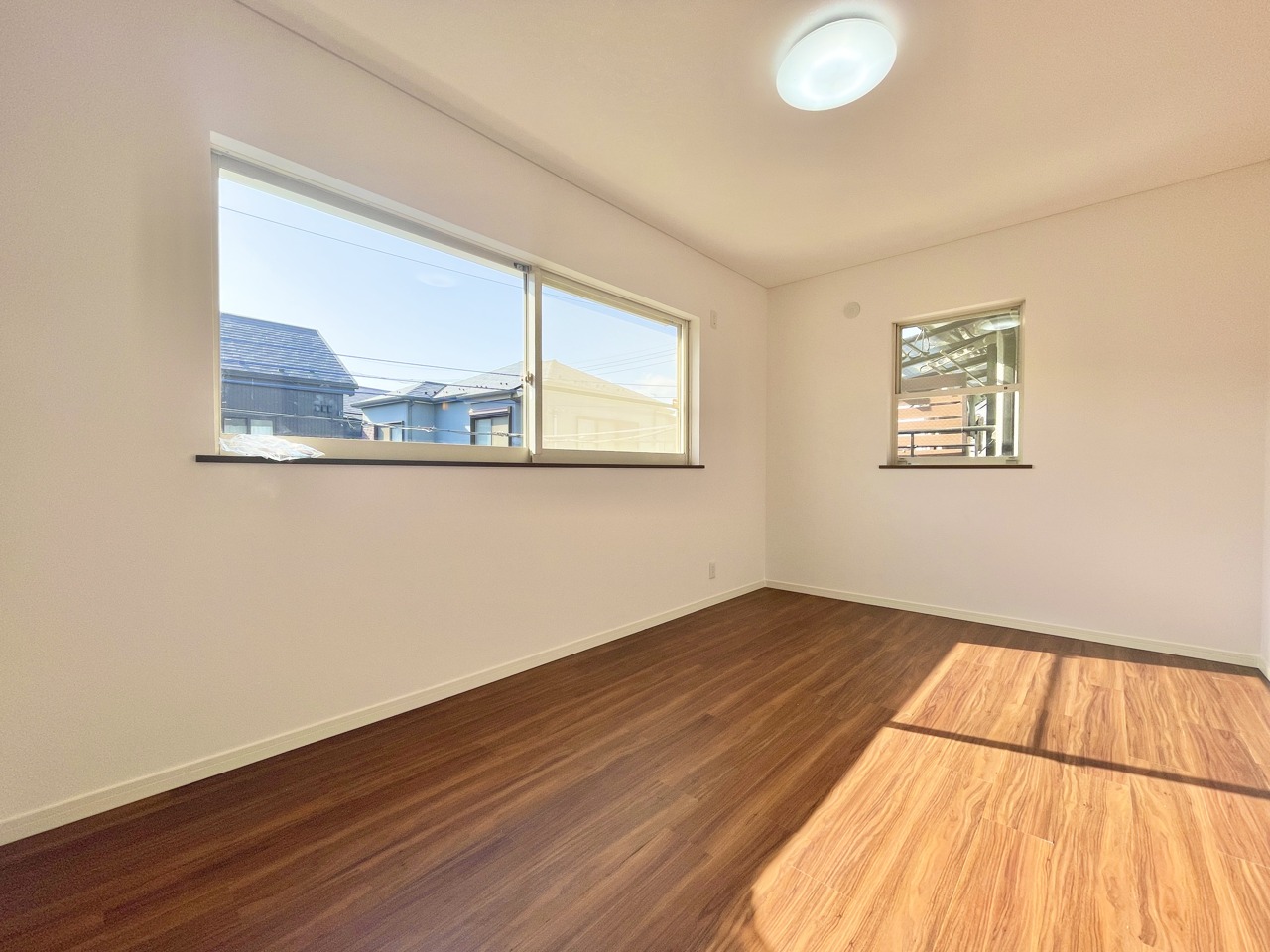 2階約6.75帖の洋室。吹抜けに面しており通風と開放感良好です。2階は全居室6帖以上です。
