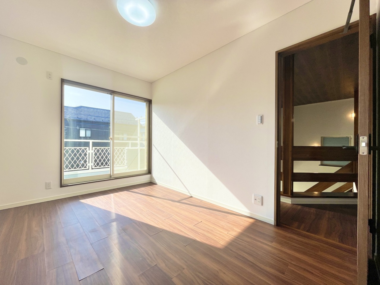 2階約6帖の洋室。バルコニーに面しており開放感が良好です。バルコニーは2階ホールからも行き来可能