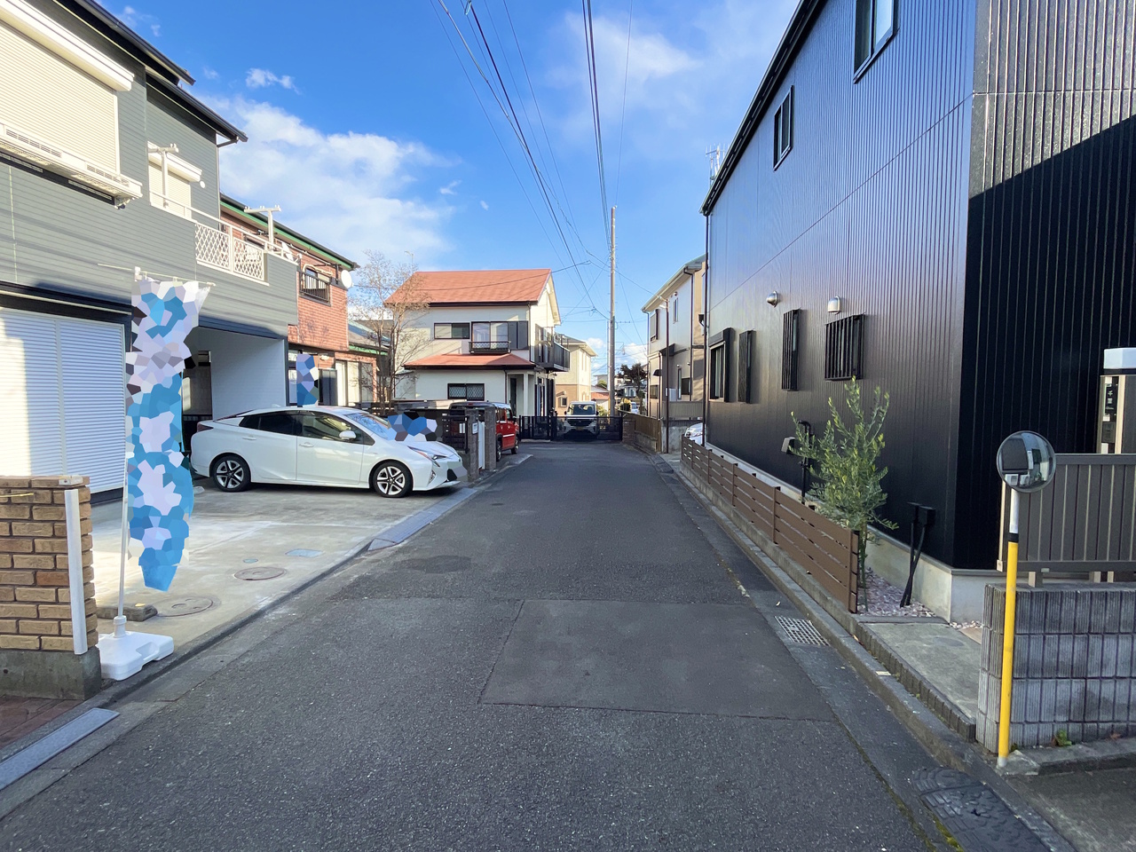 南西側全面道路は約4.5m。比較的交通量も少なく、3台駐車可能なスペースがありラクラク