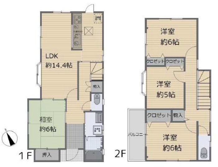 | 間取 | 4LDK (和室6帖、LDK14.4帖、洋室6帖、洋室6帖、洋室5帖) | ||
