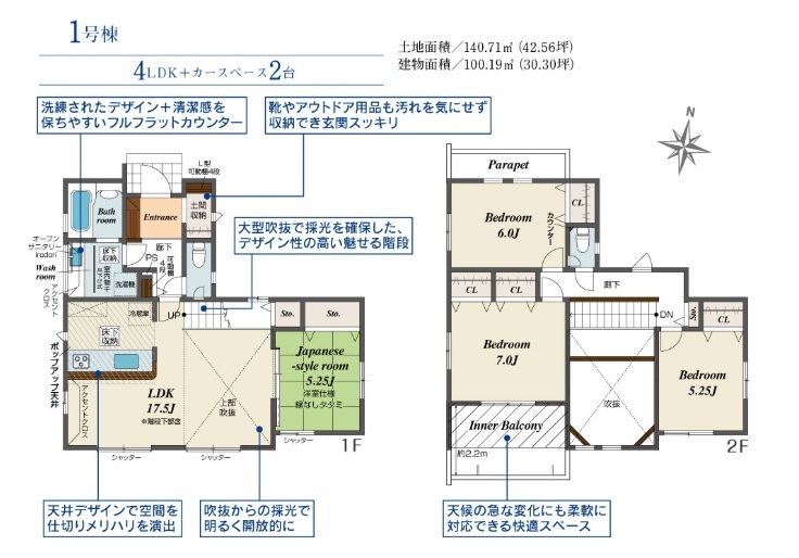 | 土地面積 | 140.71m² ~ 142.98m² | ||