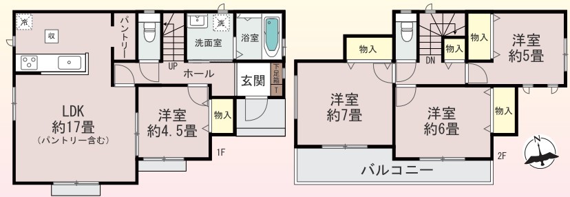 | 間取 | 4LDK (洋室4.5帖、LDK17帖、洋室7帖、洋室6帖、洋室5帖) | ||