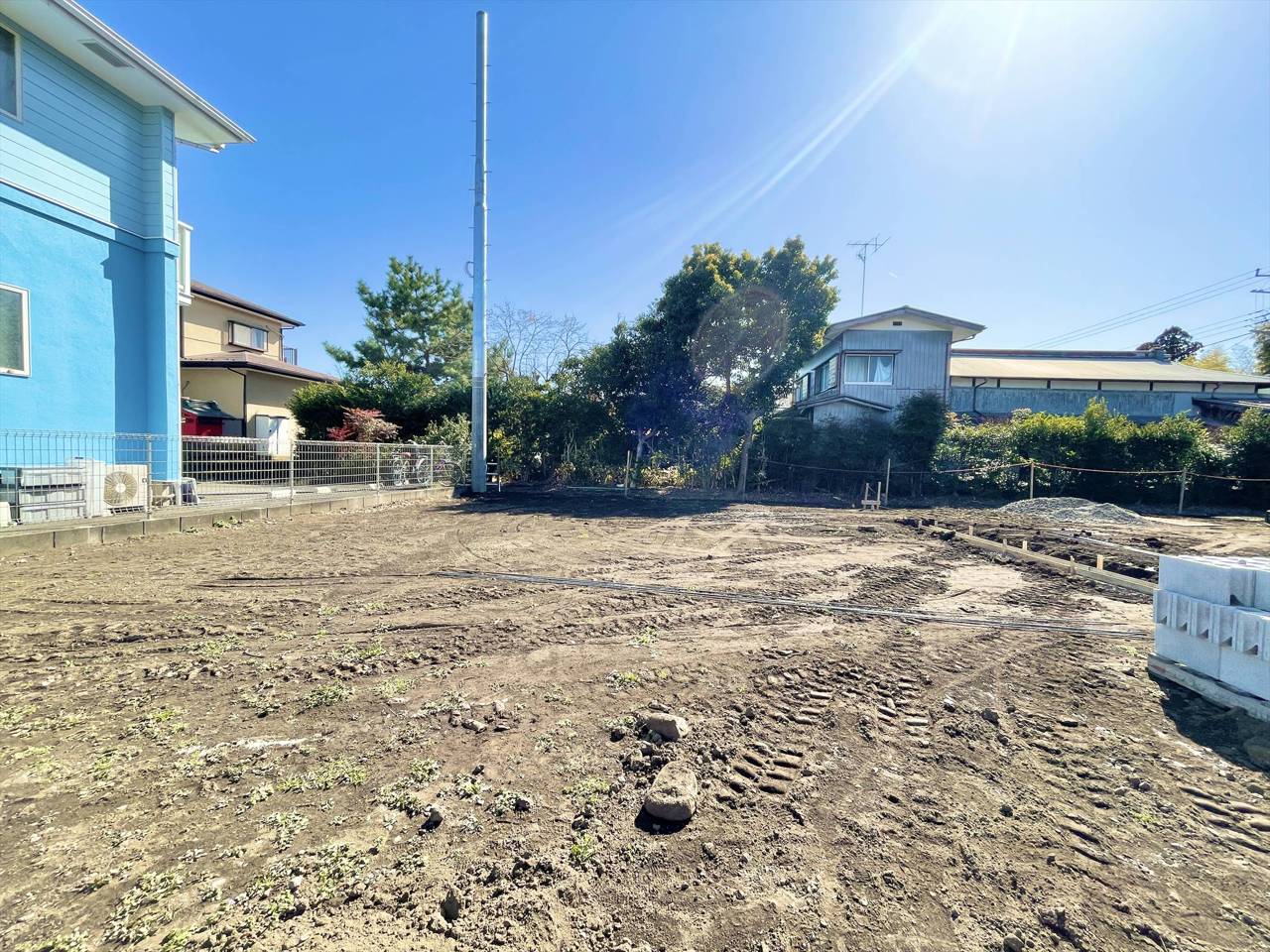 1号棟 南東道路と南西道路の角地なので、日当たりと通風は良好