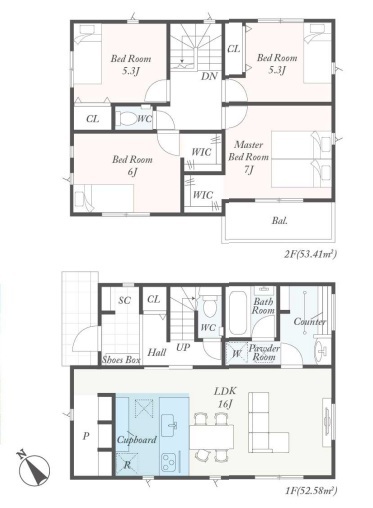 | 間取 | 4LDK (LDK16帖、洋室7帖、洋室6帖、洋室5.3帖、洋室5.3帖) | ||