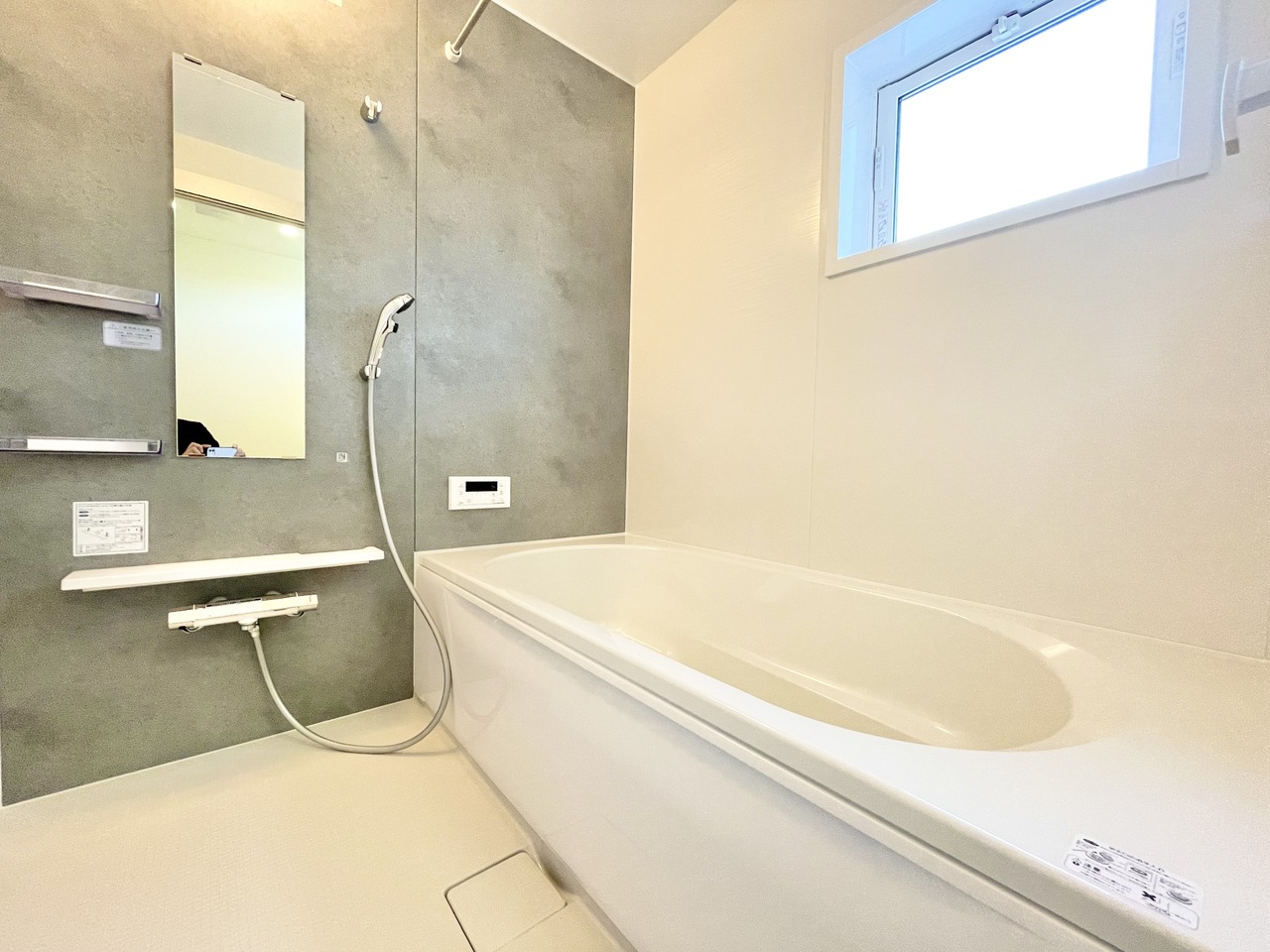 ■浴室乾燥機付きユニットバス(追炊き付き) ユニットバスは全てが浴室のために設計されているため、掃除のしやすさやカビの生えにくさ汚れにくさに特化しています。 素材は汚れが付きにくいものが使用され、お手入れが最小限に抑えられる浴室となっております。